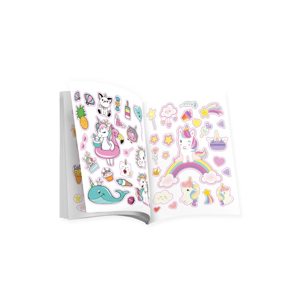 V tomto sešitu najdete samolepky roztomilých jednorožců a dalších holčičích motivů. Můžete si je nalepit například na obal sešitu nebo svačinovou krabičku a zbylými samolepkami ozdobit třeba ručně vytvořené narozeninové pozvánky. Nápadům se meze nekladou! Některé samolepky se krásně třpytí, jiné si vybarvíte sami. Hurá, jde se zdobit!