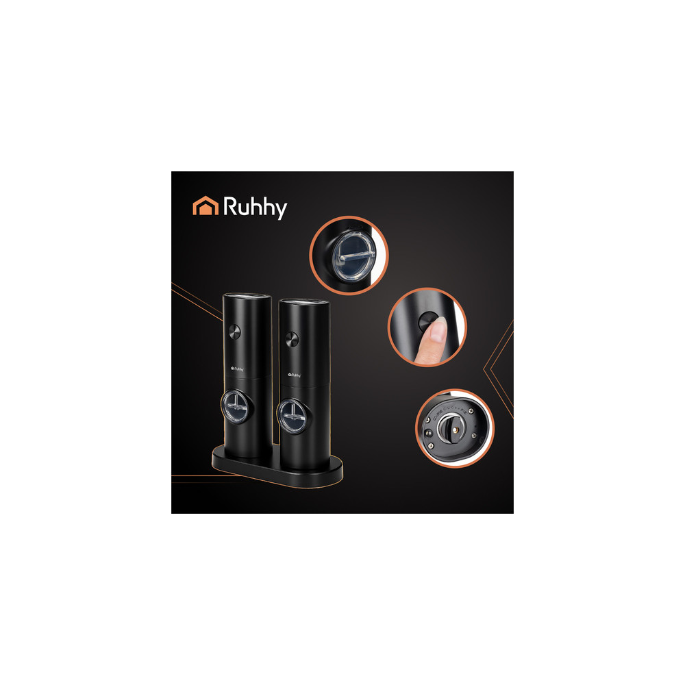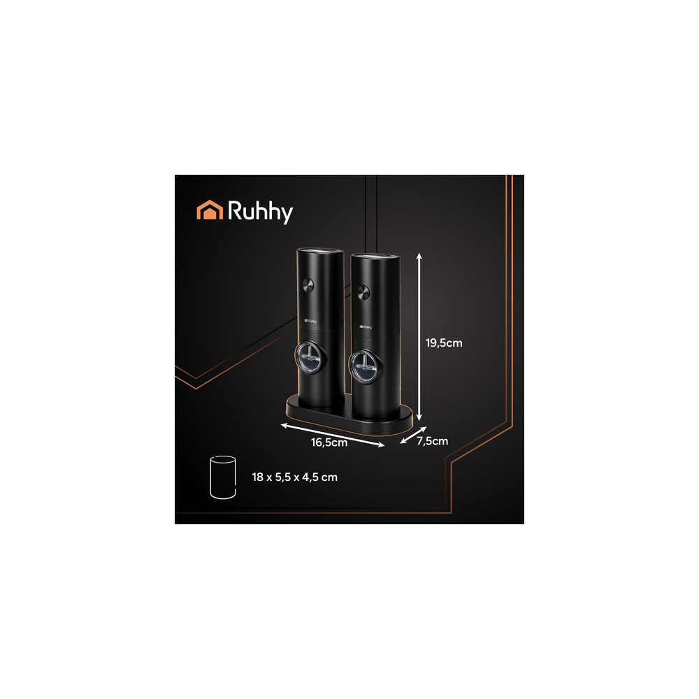 Sada elektrických mlýnků na pepř a sůl v elegantní černé barvě. Díky přesnému elektrickému mletí uvolňují plnou vůni koření a zajišťují tak dokonalou chuť každého pokrmu. Díky nastavitelné síle mletí se mlýnky plně přizpůsobí vašim potřebám. Mlýnky jsou vhodné na sůl, pepř, bylinky a různé druhy koření.