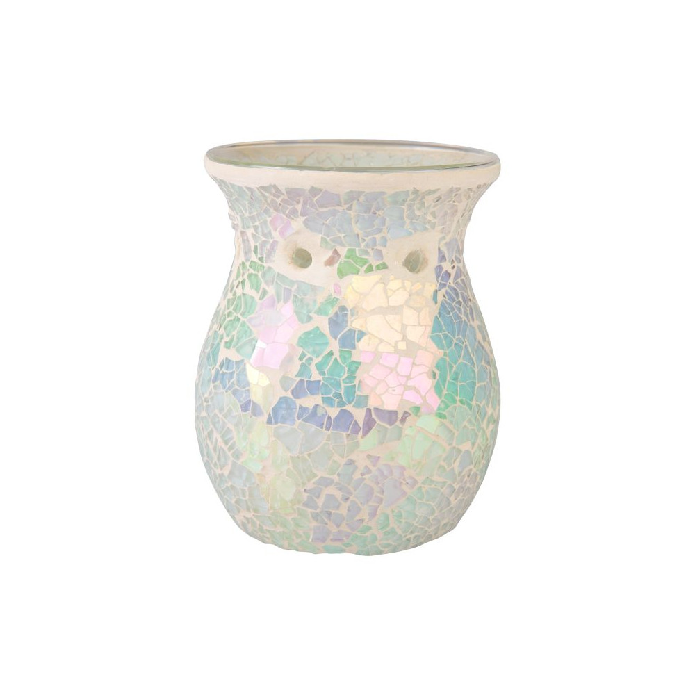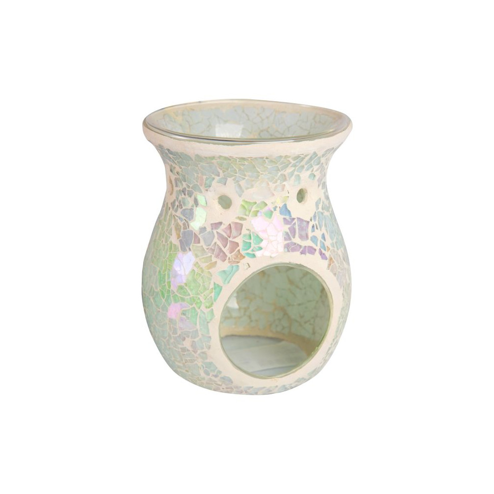 Vneste do svého domova pohodu s touto nádhernou mozaikovou aromalampou. Jemné odlesky perleťových kousků skla vytvářejí hřejivou atmosféru, která rozjasní každý kout. Stačí přidat trochu vody a pár kapek esenciálního oleje, nebo vonný vosk, a nechat prostor naplnit klidem a harmonií. Ideální pro chvíle odpočinku s knihou, relaxační koupel nebo večery, kdy si chcete užít ticho a teplo domova.