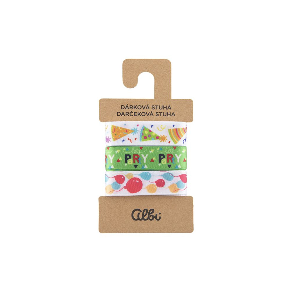 Set kvalitních látkových stuh se 3 různými motivy. Hodí se na ozdobení dárku pro jakoukoli oslavu.