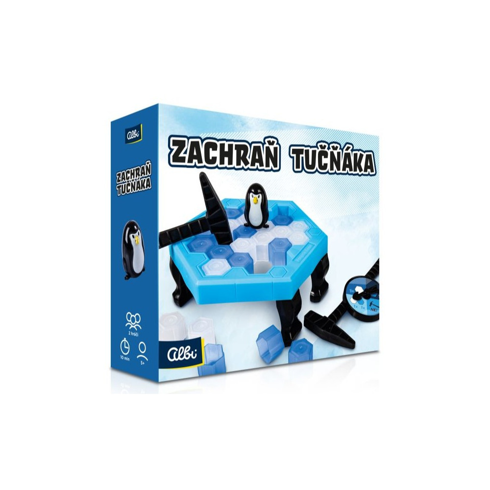 Poutavá rodinná hra plná zábavy a napětí! Zatočte kolečkem a poté z ledové plochy vyklepněte odpovídající ledové kostky podle toho, kam ukazuje šipka. Ten, komu tučňák spadne prohrává a hra končí! Jednoduchá pravidla, svižné hraní a spousta zábavy pro malé i velké hráče.