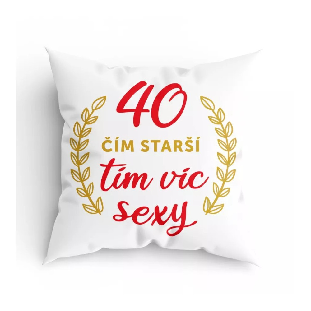 Humorný polštářek - 40 čím starší, tím víc sexy