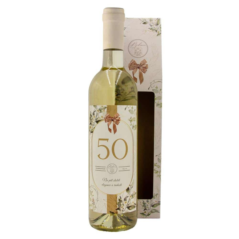 Jubilejní víno v dárkové krabičce s věnováním ke kulatým narozeninám. Elegantní láhev bílého vína Chardonnay v narozeninovém designu je krásným způsobem, jak popřát vše nejlepší a oslavit tento výjimečný milník.