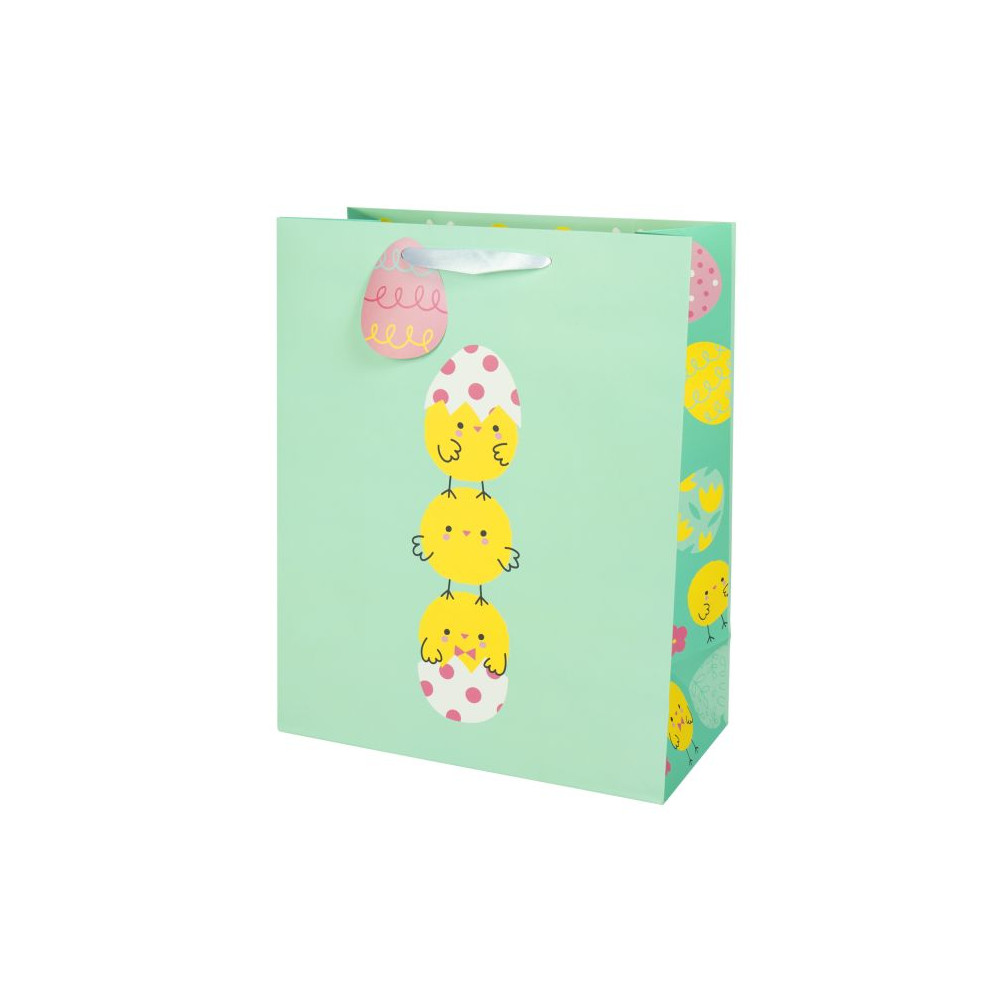 Velikonoční dárková taška s motivem roztomilých kuřátek se skvěle hodí na velikonoční výslužku pro koledníky.