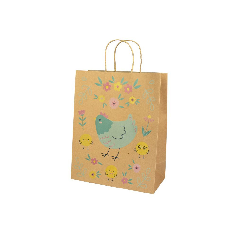 Velikonoční dárková taška s motivem slepičky a kuřátek se skvěle hodí na velikonoční výslužku pro koledníky.
