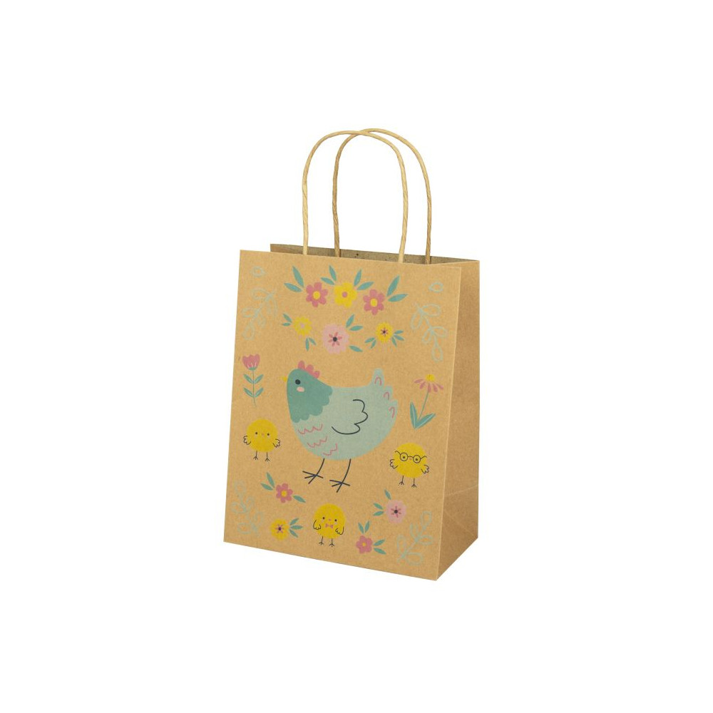 Velikonoční dárková taška s motivem slepičky a kuřátek se skvěle hodí na velikonoční výslužku pro koledníky.