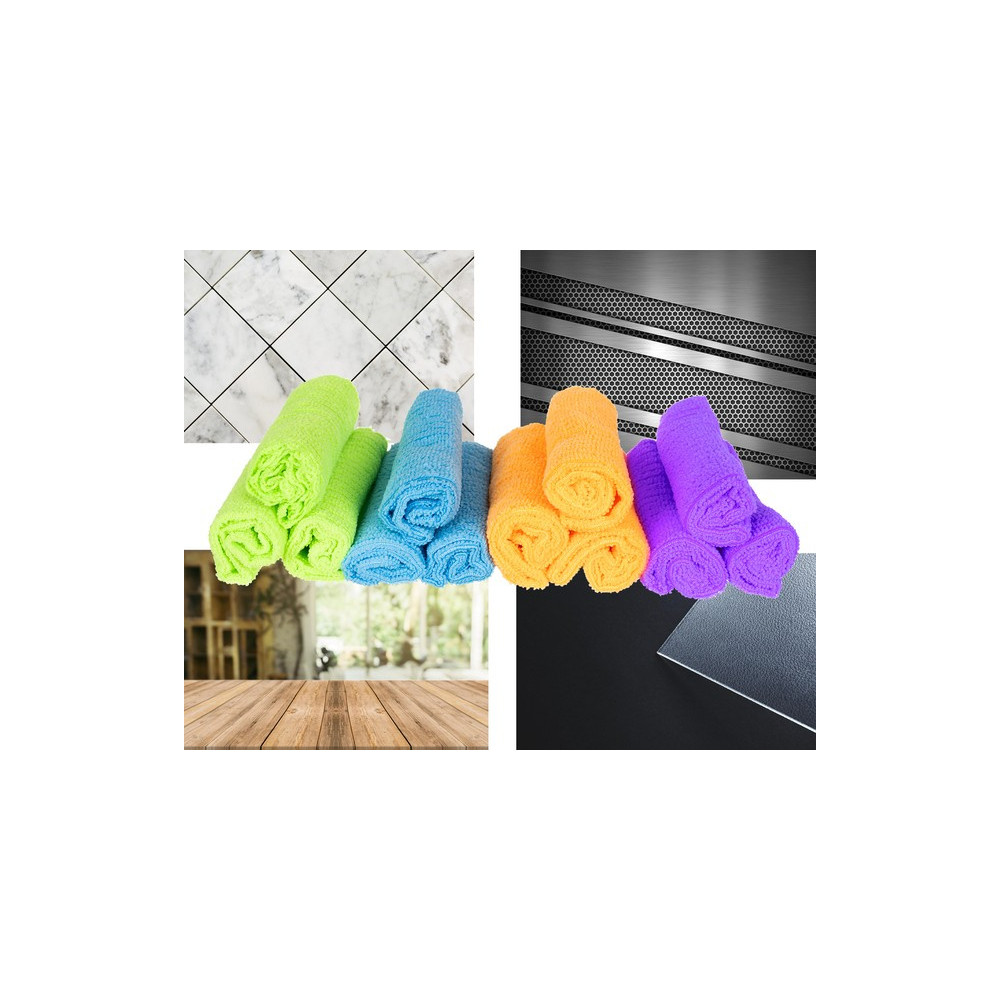 Sada 12 utěrek z mikrovlákna se hodí na každodenní úklid v kuchyni nebo koupelně, ale stejně dobře poslouží při čištění nábytku nebo jiných prvků interiéru. Utěrky můžete po použití vyprat nebo vymýt ve vodě.
