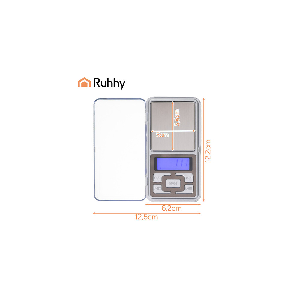 Vestavěná ochranná klopa chrání vážicí plochu i displej při přenášení. Podsvícený displej zajišťuje snadné čtení hodnot i za zhoršených světelných podmínek. Praktická funkce TARE umožňuje pohodlné vážení v misce či jiné nádobě bez nutnosti přepočítávání. Skvělá volba pro klenotníky, modeláře, sběratele i do kuchyně, kde je přesnost klíčová.