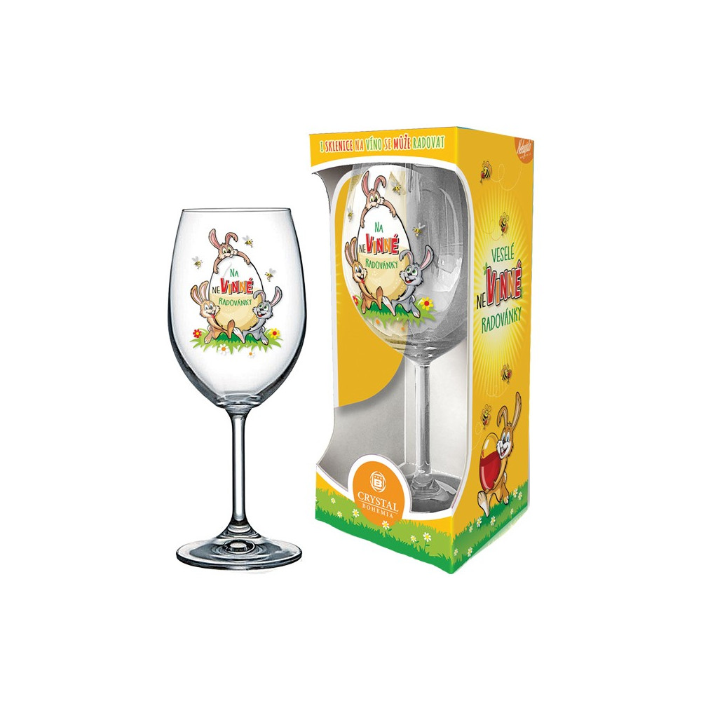 Originální velikonoční sklenice na víno s potiskem a motivem„Na (ne)vinné radovánky“. Zabaleno v dárkové krabičce.