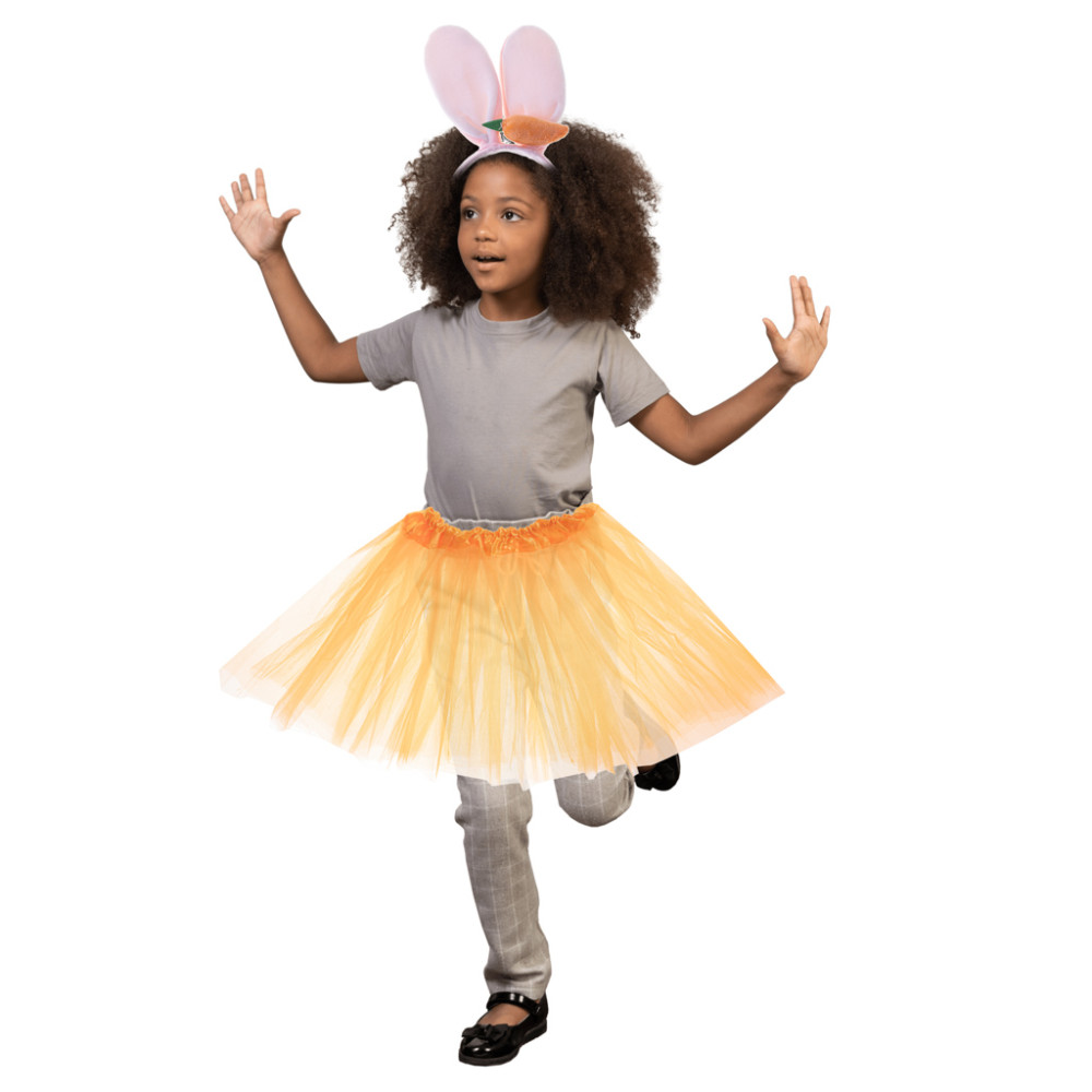 Tento milý kostým zajíčka ohromí každého. Sada obsahuje čelenku s měkkýma ušima a mrkví a také oranžovou tylovou sukni. Ideální kostým na karneval, Halloween a nebo jinou tematickou párty.
