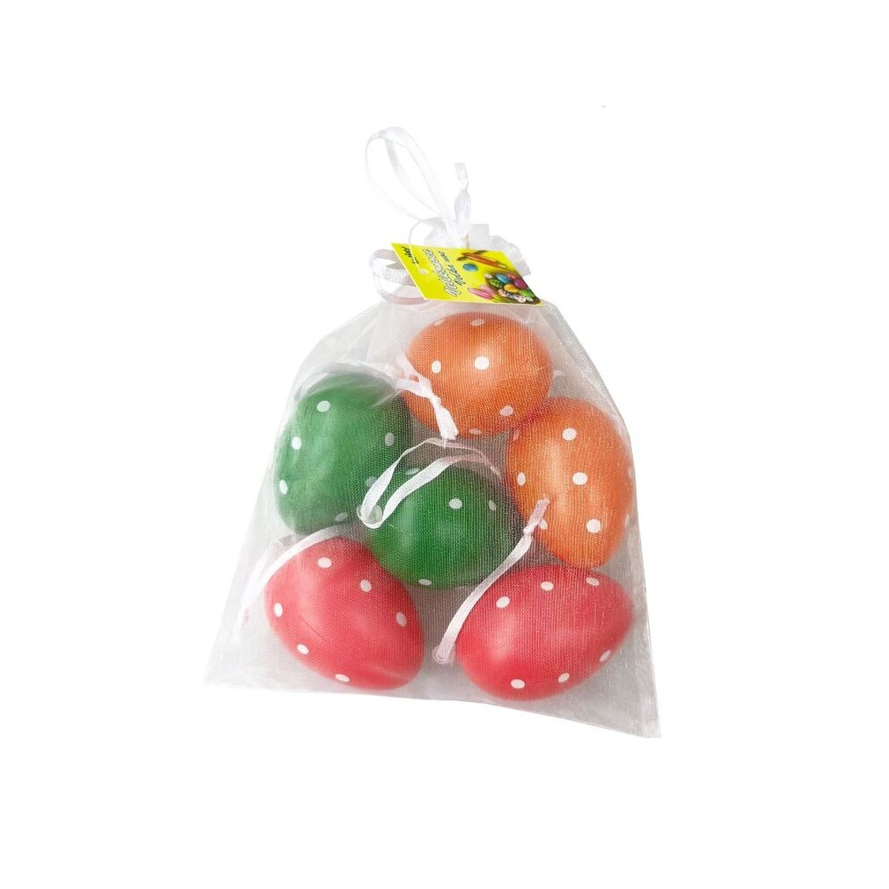 Dekorační plastová vajíčka v praktickém organza sáčku. V balení je dohromady 6 různě malovaných vajíček.Materiál: plastRozměr: vajíčko 4 x 6 cm