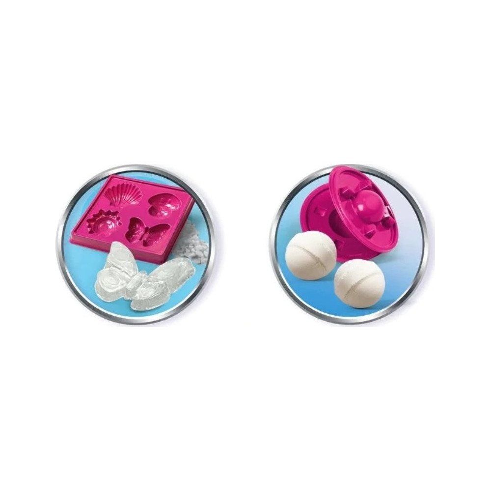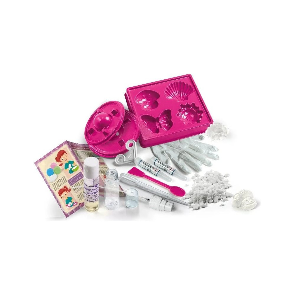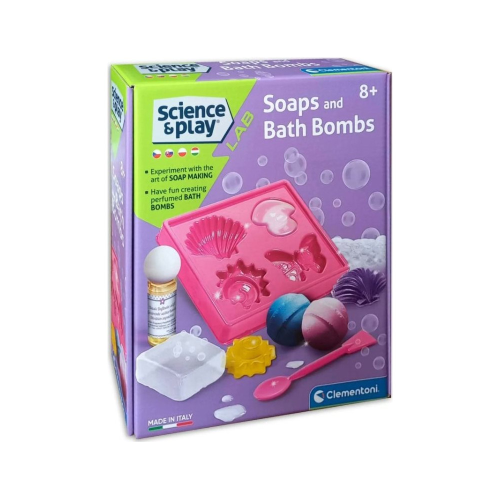 Fantastická vědecká sada přinese spoustu zábavy při vytváření skutečných mýdel a voňavých bomb do koupele. Laboratoř na výrobu mýdel a koupelových bomb umožní experimentovat s vlastní domácí kosmetikou. Bohatě ilustrovaný návod provede děti při objevování vědy o kosmetice prostřednictvím řady zcela bezpečných experimentů.
