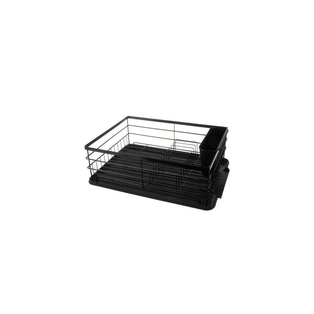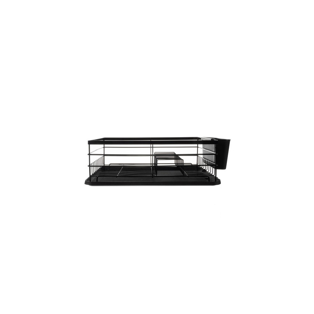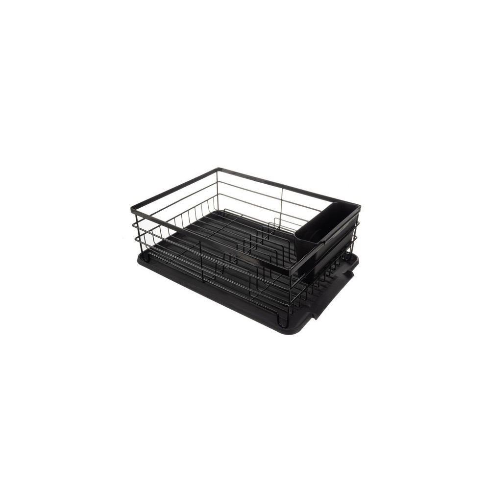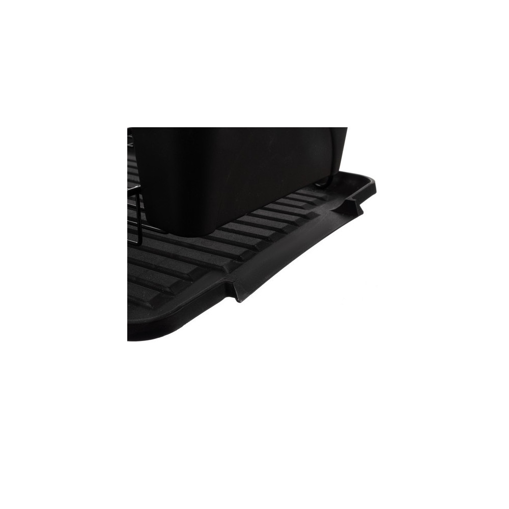 Velký odkapávač na nádobí z kvalitního pochromovaného kovu v elegantní černé barvě. Obsahuje také odnímatelný odkapávač na příbory, který lze snadno připevnit na okraj odkapávače. Spodní tác má na kraji odtok pro samovolné odtékání přebytečné vody do dřezu.