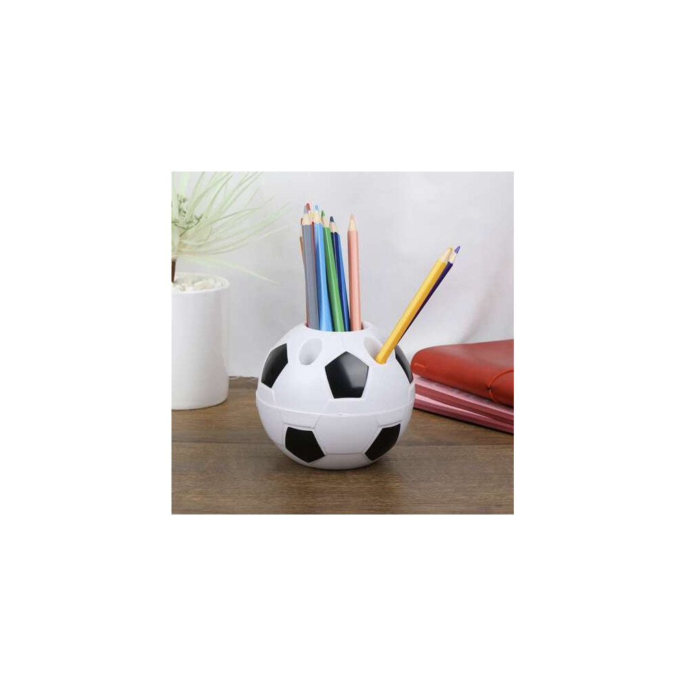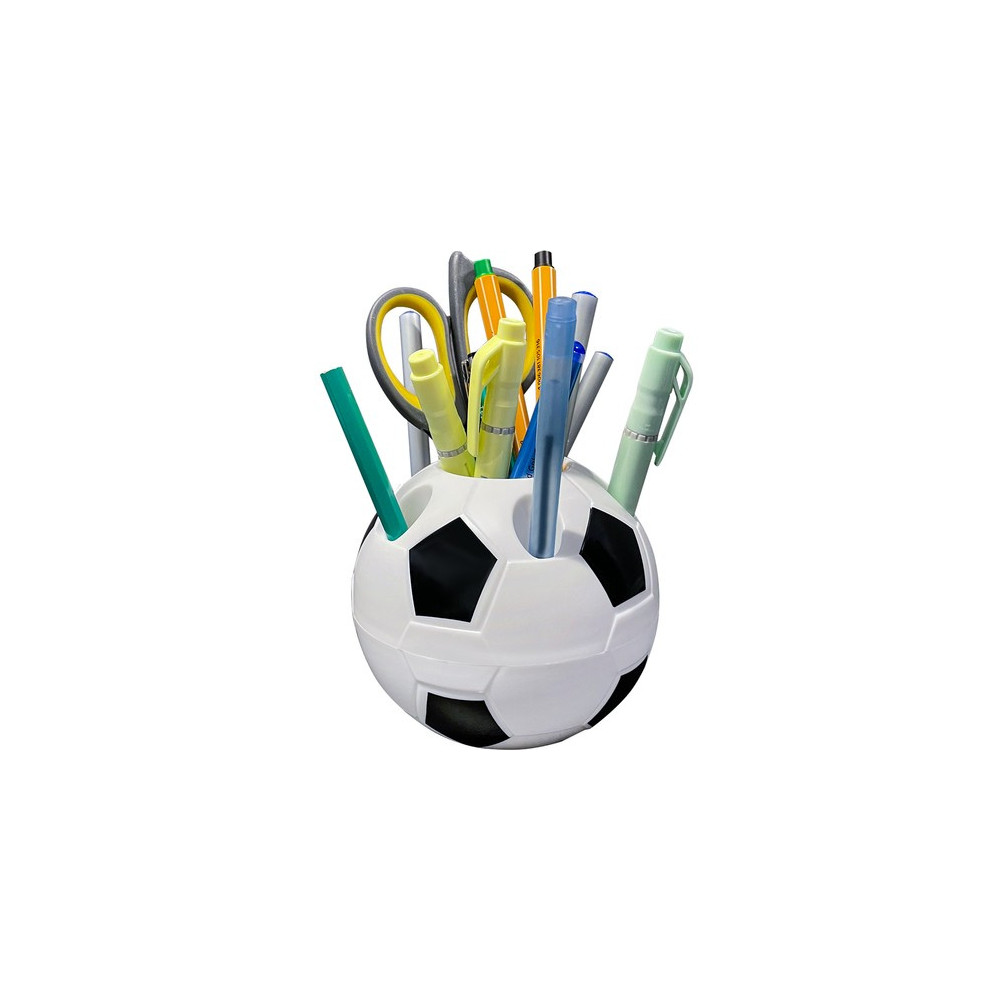 Stolní organizér ve stylu fotbalového míče je skvělý doplněk pro každého fanouška fotbalu. Organizér se dá otevřít, což umožňuje snadné čištění a udržování pořádku na stole. Kolem hlavního otvoru je pět menších přihrádek, ideálních na pera, tužky nebo pastelky. Prostorný prostředek pojme nůžky, psací potřeby a další drobnosti, které chcete mít po ruce. Tento organizér pomáhá udržet pracovní prostor přehledný a usnadňuje každodenní práci.