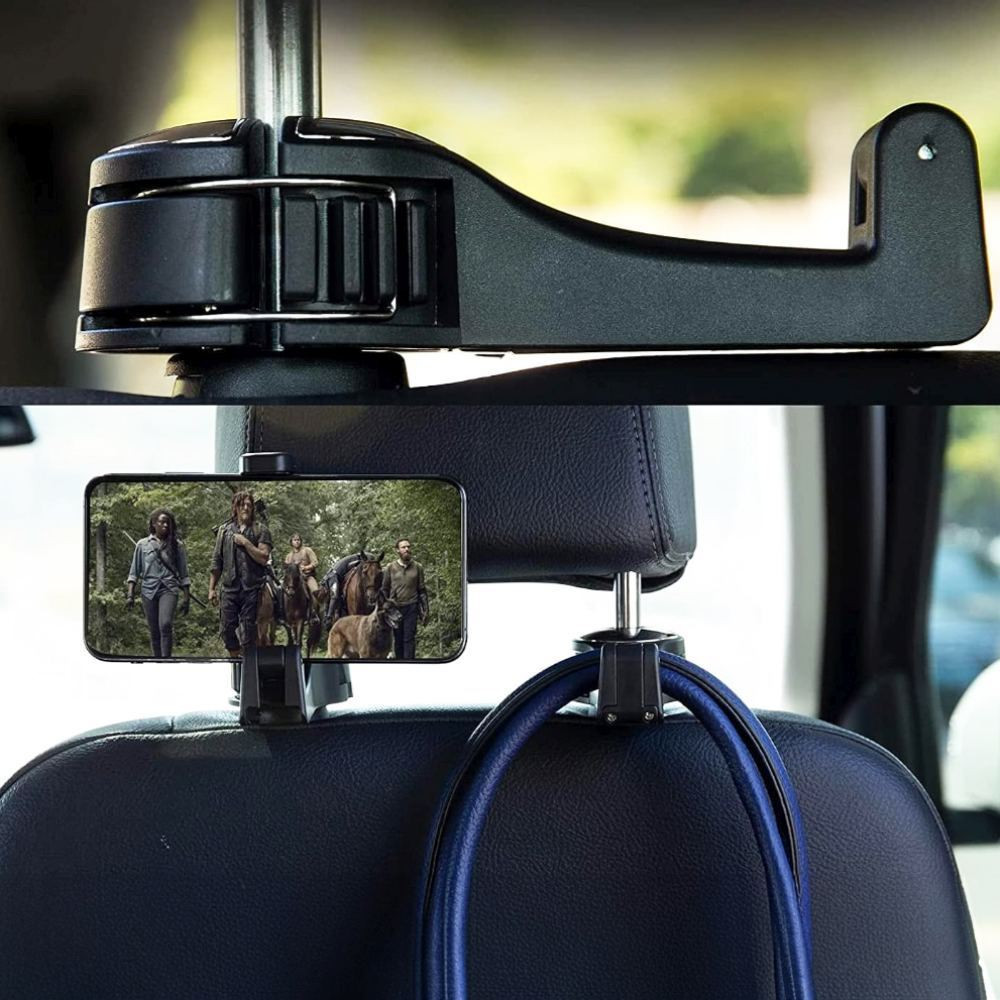 Zapomeňte na vysypanou kabelku nebo obsah tašek spadlý pod sedadly a pořiďte si malou multifunkční vychytávku, která vám ušetří nervy a prostor ve vašem vozidle. Jedná se o tento háček, který se připevňuje na opěrku hlavy sedačky vašeho vozu.