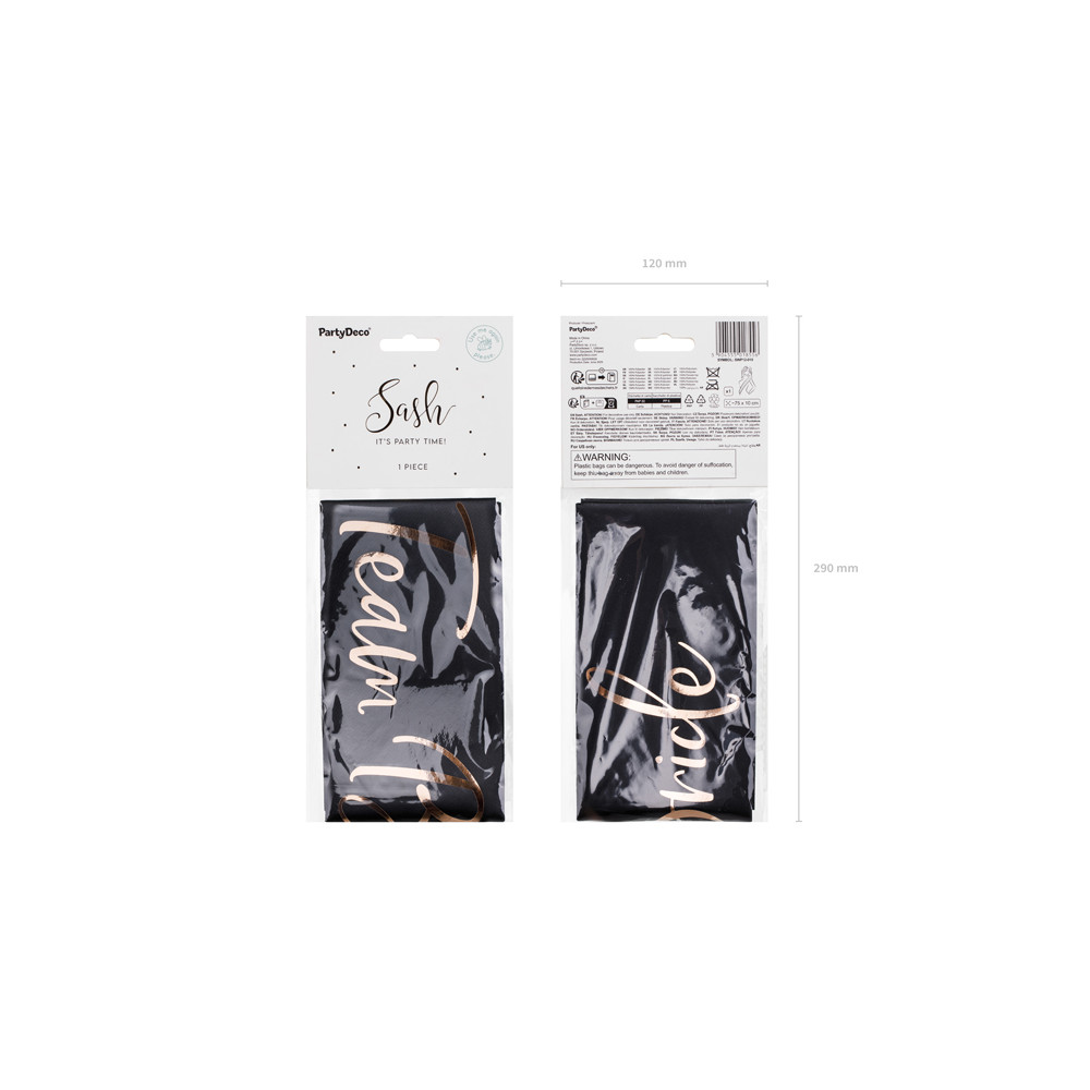 Černá saténová šerpa s nápisem Team Bride (tým nevěsty) v rosegold barvě. Ideální doplněk na rozlučku se svobodou.