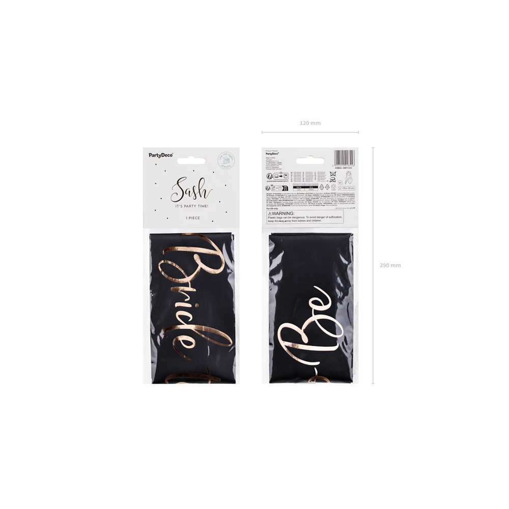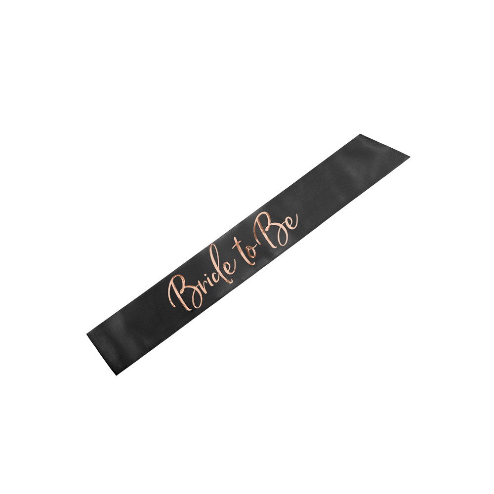Černá saténová šerpa s nápisem Bride to Be (budoucí nevěsta) v rosegold barvě. Ideální doplněk na rozlučku se svobodou.
