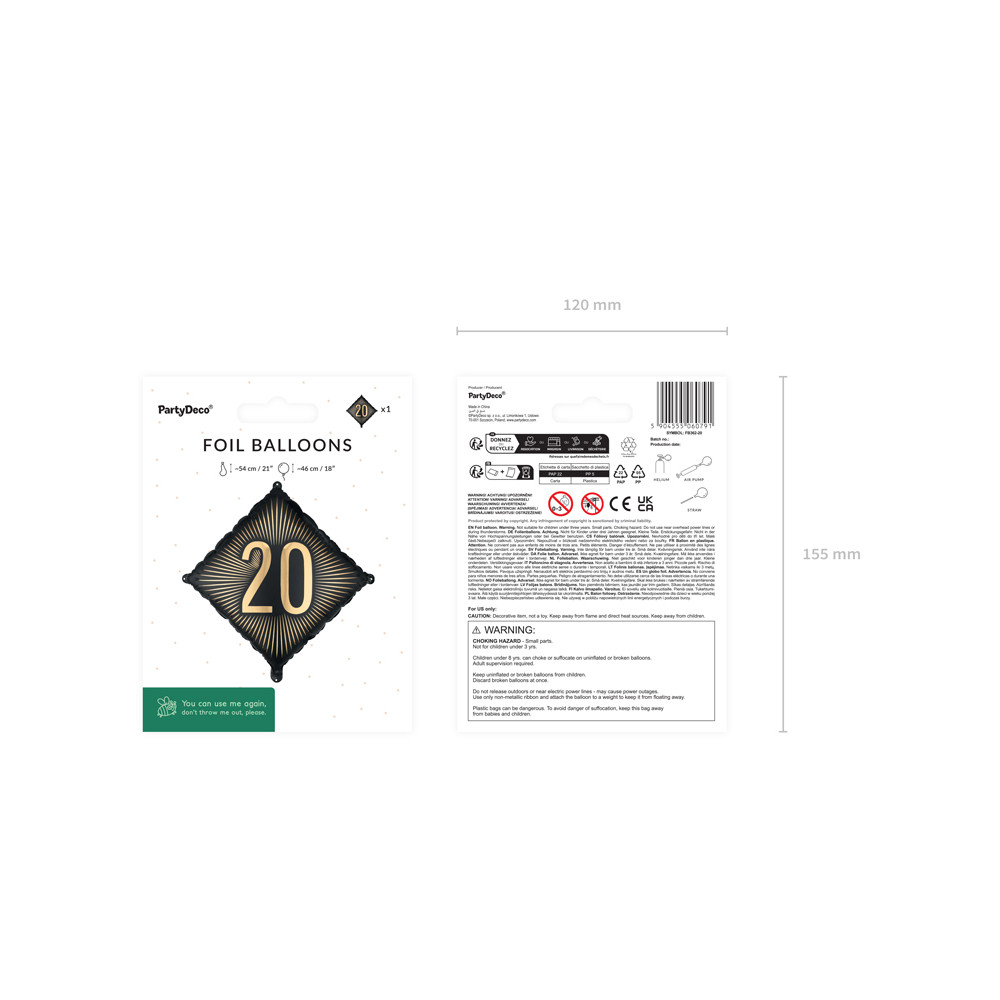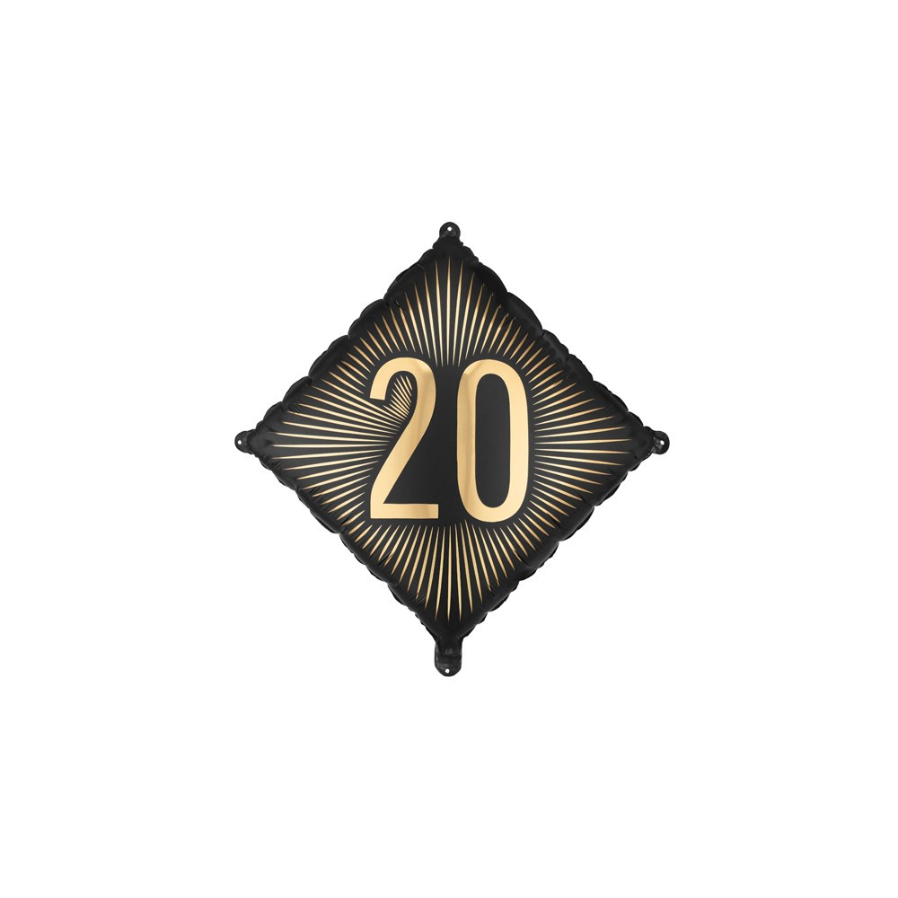 Fóliový balónek v černé barvě se zlatými detaily k 20.tým narozeninám.