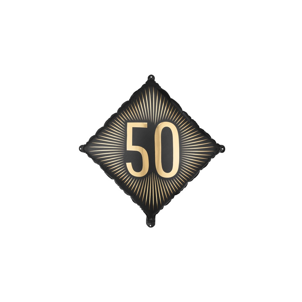 Fóliový balónek v černé barvě se zlatými detaily k 50.tým narozeninám.