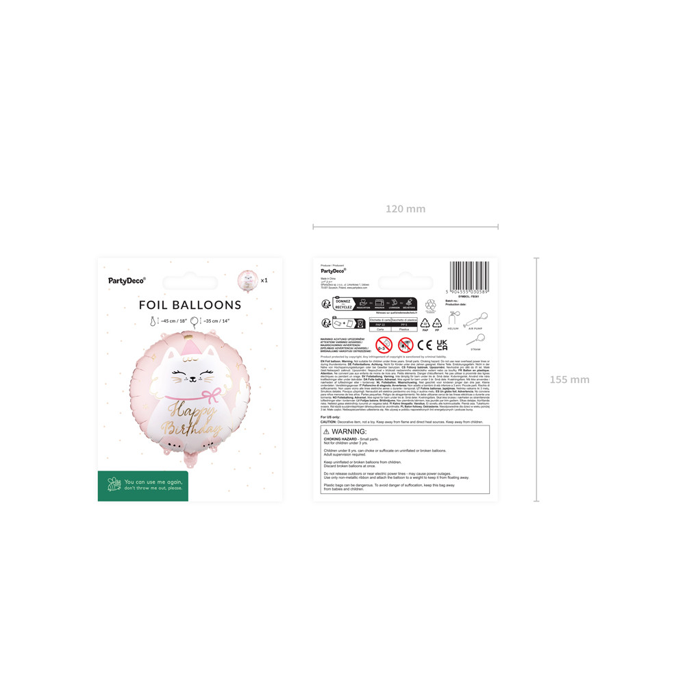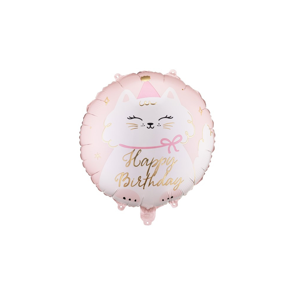 Fóliový balónek k narozeninám v kulatém designu a s motivem kočičky. Ideální doplněk pro narozeninovou tématickou oslavu pro děti.