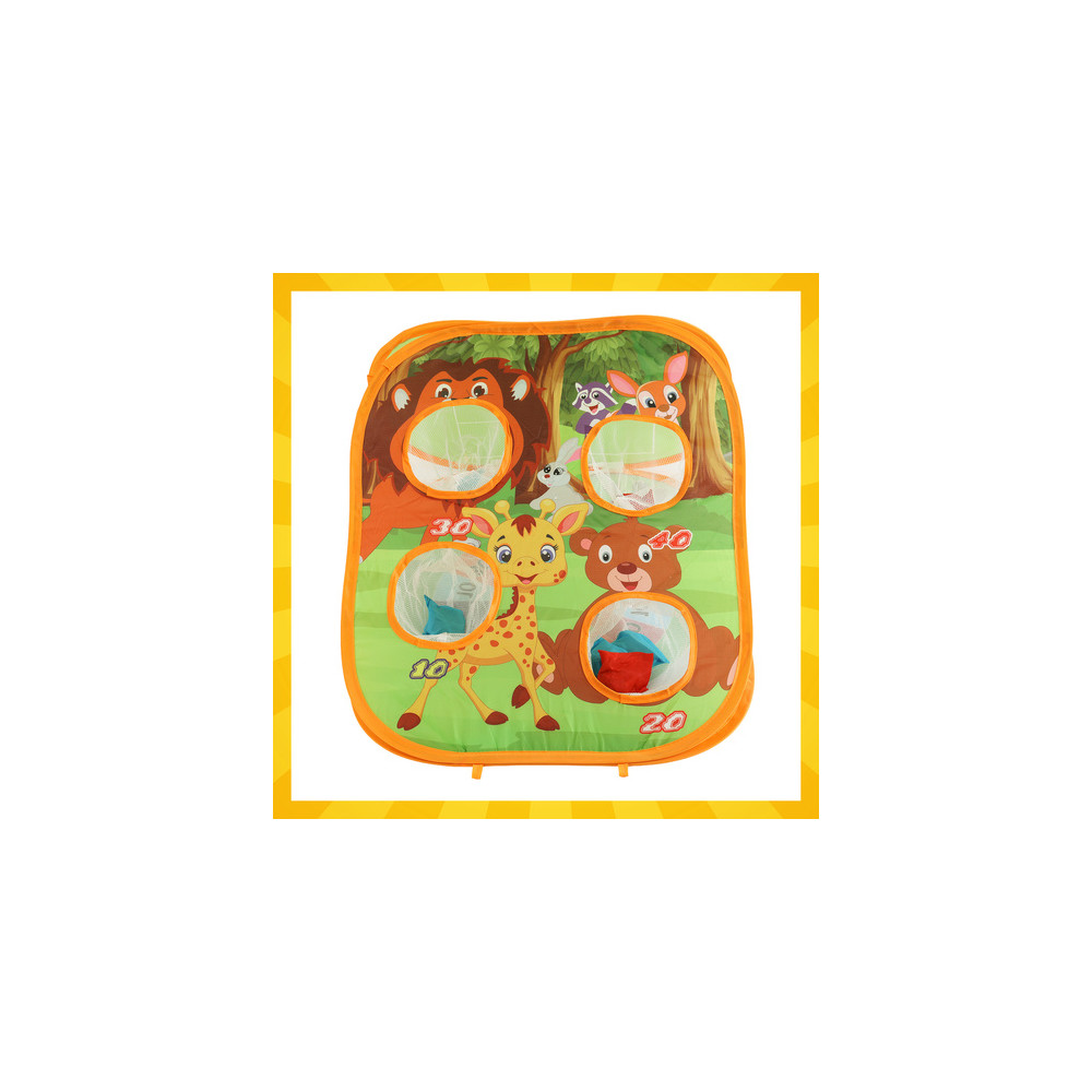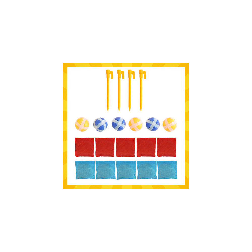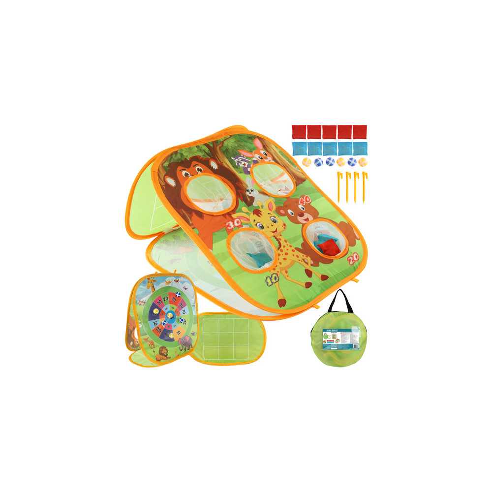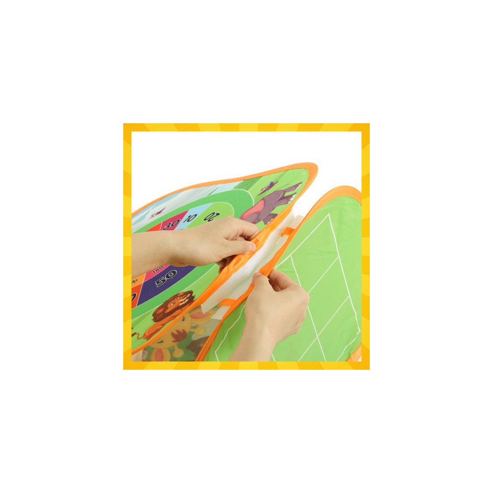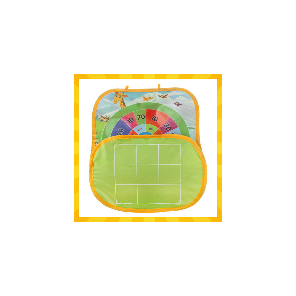 Vzdělávací hra vhodná na zahradu i do domu. Podporuje rozvoj motorických dovedností, koordinace a zdravé soutěživosti. Hračka nabízí 3 různé hry - hod pytlíkem na cíl, hod míčkem a piškvorky.