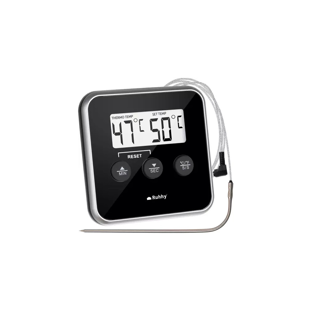 Digitální kuchyňský teploměr se sondou je praktickým pomocníkem pro každého, kdo chce mít přípravu pokrmů plně pod kontrolou. Velký a přehledný LCD displej zajišťuje snadné a rychlé čtení naměřených hodnot během vaření. Díky zabudovanému magnetu jej můžete jednoduše připevnit na lednici, troubu nebo gril a mít jej vždy po ruce. Široký teplotní rozsah od -20 do 250 °C umožňuje použití při pečení, grilování, uzení i smažení, stejně jako při kontrole teploty tekutin či oleje.