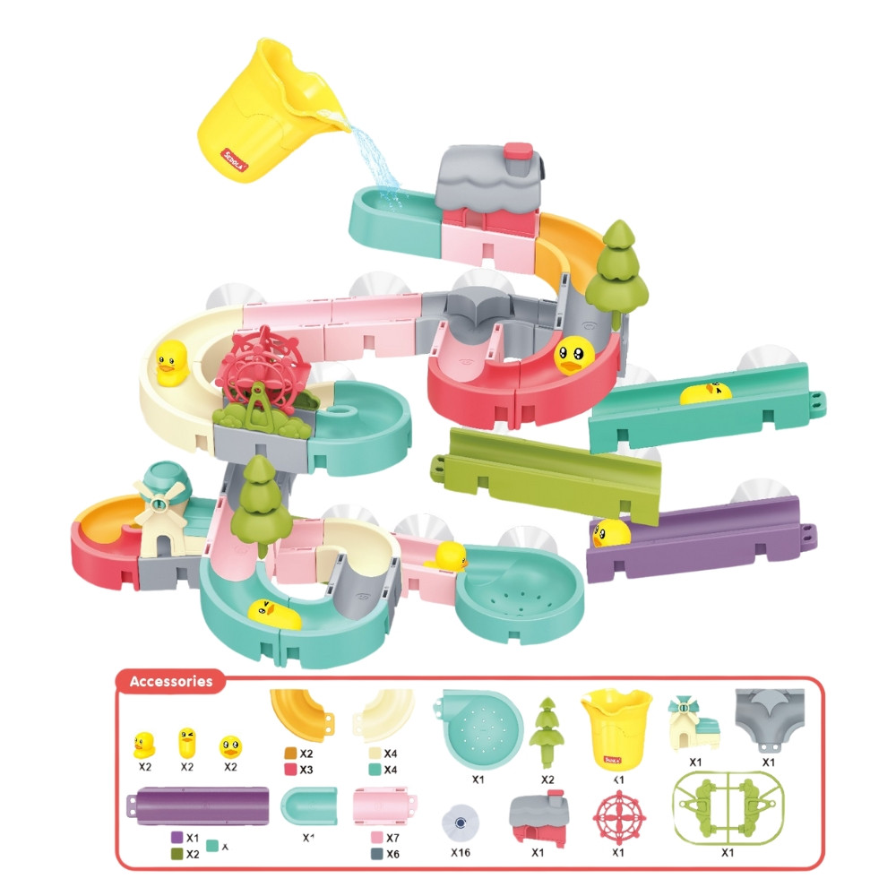 DIY Skluzavka do vody 62 ks přináší dětem maximální možnosti pro kreativní a zábavnou hru ve vodě. Díky až 62 dílkům si mohou děti skládat vlastní skluzavky a dráhy, sledovat pohyb kuliček či malých hraček ve vodě a vytvářet nekonečné kombinace tras.