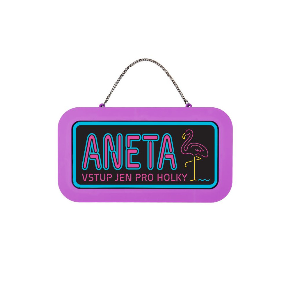 Originální svítící neonová cedulka se jménem. Snadno ji kamkoli postavíte nebo zavěsíte, funguje totiž na baterie.