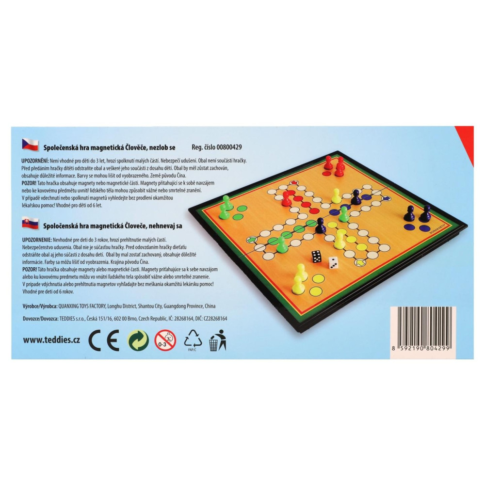Oblíbená klasická hra Člověče, nezlob se v praktickém magnetickém provedení! Ideální pro cestování, hraní v autě, ve vlaku nebo na dovolené. Díky magnetickým figurkám zůstává vše na svém místě, i když zrovna jedete zatáčkou. Zábava pro celou rodinu, která neomrzí!