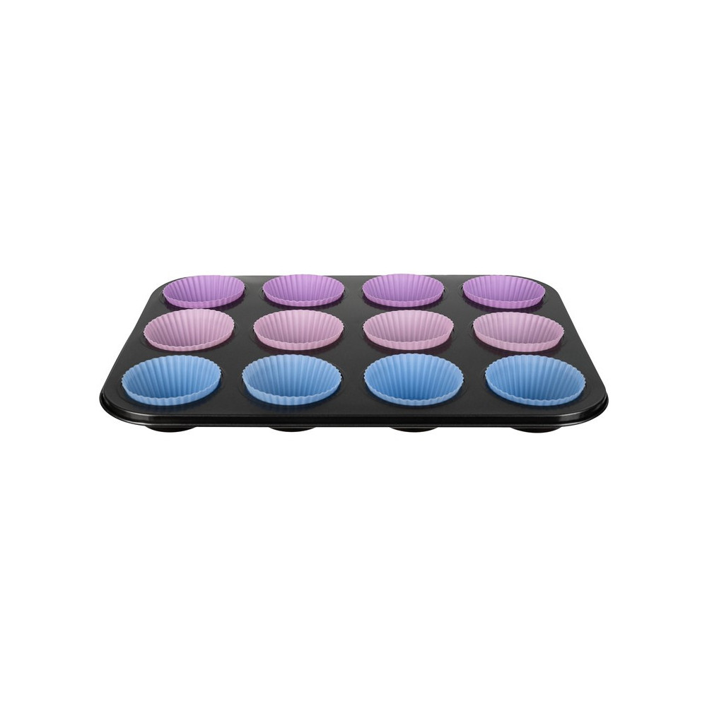 Sada silikonových košíčků s plechem na 12 muffinů je ideální volbou pro každého milovníka domácího pečení. Silikonové formy jsou opakovaně použitelné, zdravotně nezávadné a chuťově neutrální, takže nijak neovlivní výslednou chuť dezertů. Díky teplotní odolnosti od -40 °C až do +230 °C můžete muffiny nejen péct, ale také je následně zamrazit přímo ve formě.
