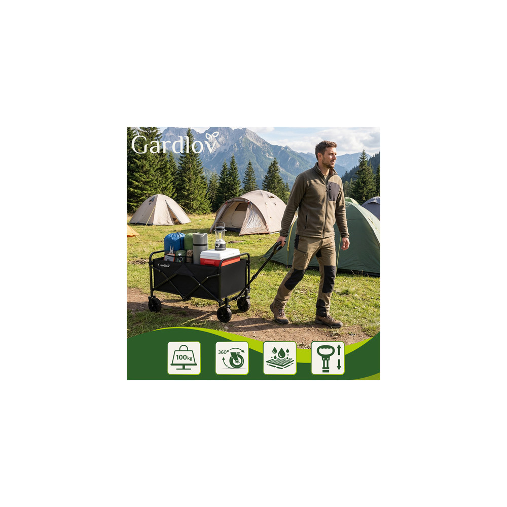Otočná přední kola o 360° a nastavitelná ergonomická rukojeť zajišťují pohodlné ovládání a skvělou pohyblivost. Praktická skládací konstrukce umožňuje vozík během několika sekund složit a snadno uložit nebo převážet v kufru auta.