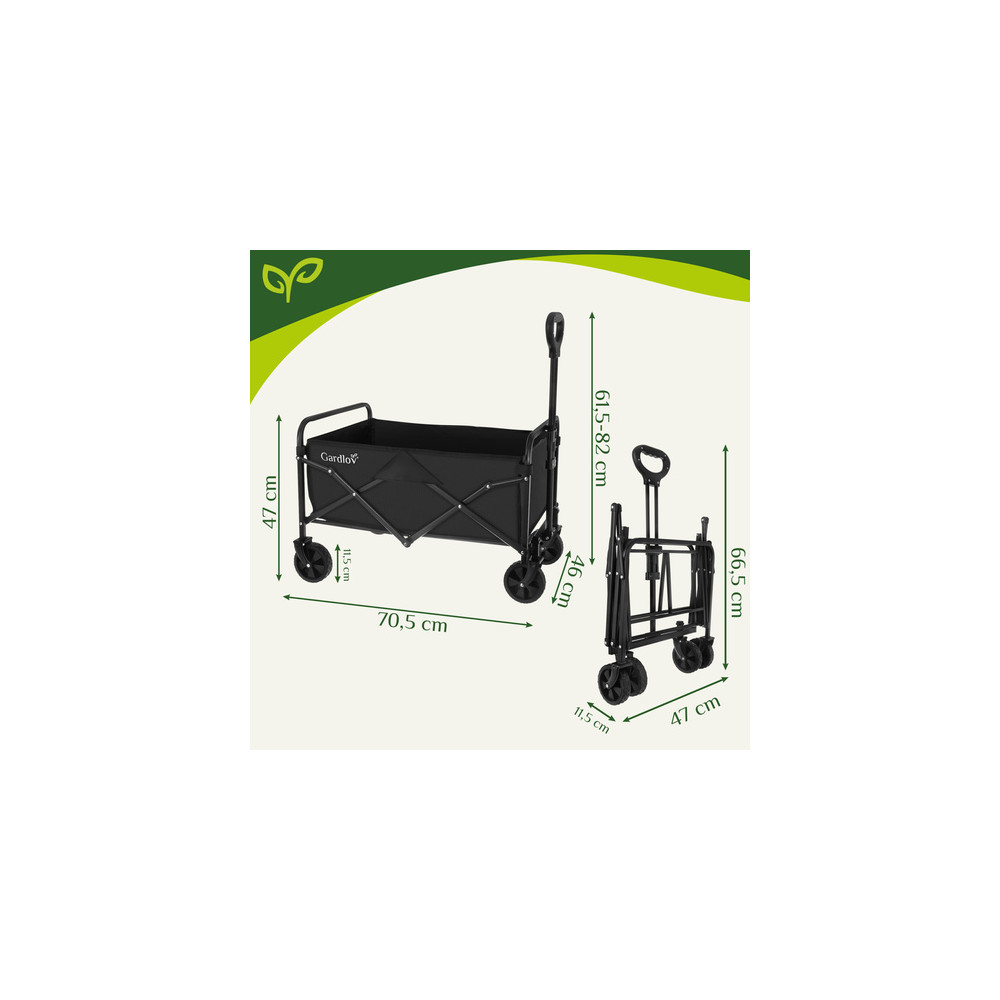 Rozměr: kolo 11,5 cm, výška rukojeti 61,5 - 82 cm, rozložený vozík 70,5 x 47 x 46 cm, složený vozík 66,5 x 47 x 11,5 cm