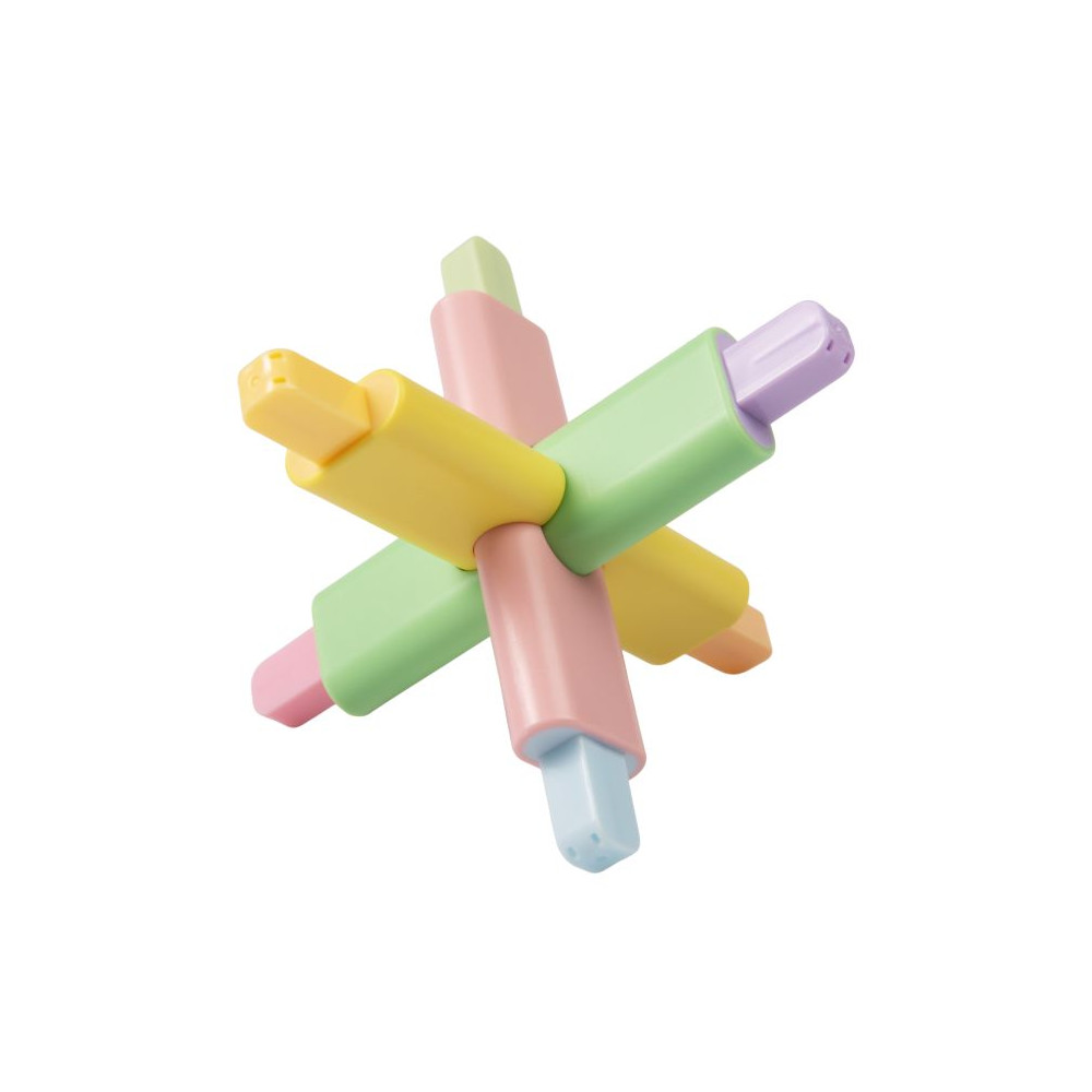 Tato sada obsahuje 3 oboustranné fixy s neonovými barvami (růžovou, fialovou, zelenou, modrou, oranžovou, žlutou), které se kromě psaní dají složit do originálního hlavolamu.