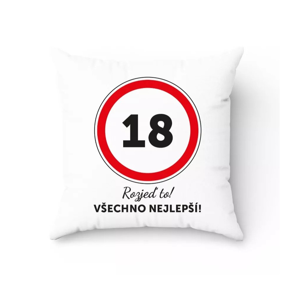 Originální polštářek k 18. narozeninám s přáním Všechno nejlepší . Měkký a milý dárek, který potěší každého oslavence v jeho velký den.