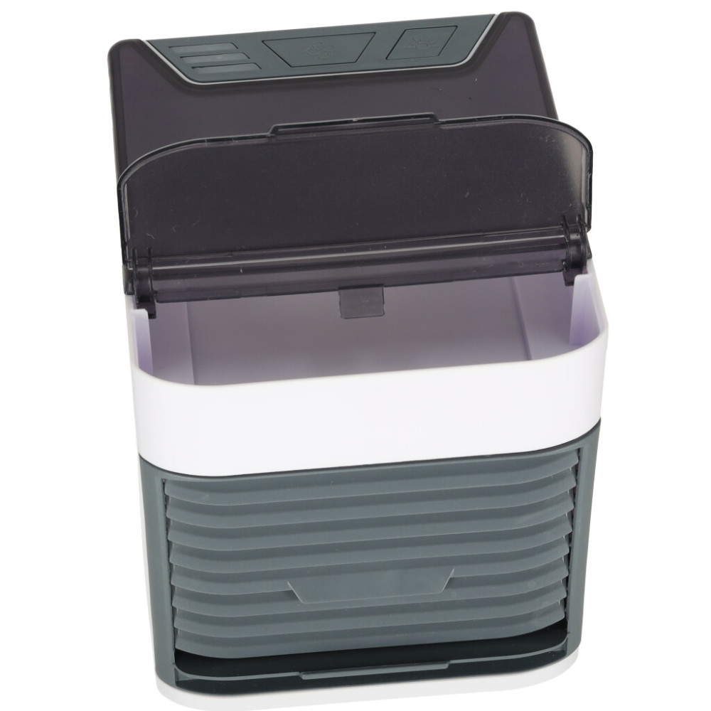 Tato kompaktní vodní klimatizace je skvělým řešením pro osvěžení během horkých letních dnů doma, v kanceláři i na cestách. Funguje na principu odpařování vody. Nasává teplý vzduch, který následně ochladí a vrací zpět jako příjemný chladivý vánek. Stačí ji připojit pomocí USB kabelu, nalít vodu do nádržky a během chvíle si užívat osvěžující vzduch. Pro ještě intenzivnější chlazení můžete do vody přidat i kostky ledu. Ovládací panel umožňuje nastavit výkon i směr proudění vzduchu podle vašich potřeb. Zařízení zároveň pomáhá vzduch zvlhčovat a částečně čistit. Minimalistický design navíc skvěle zapadne do každého interiéru a nezabere téměř žádné místo.