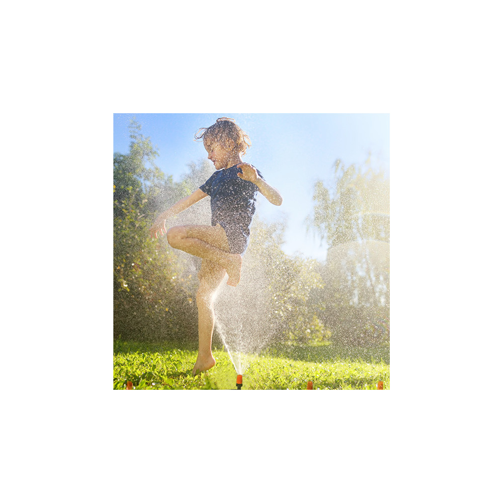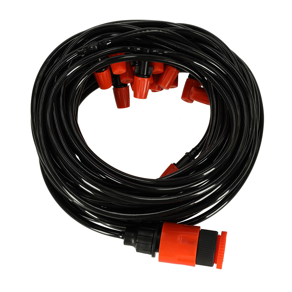 Zahradní zavlažovací systém je praktickým pomocníkem pro ochlazení zahrady během horkých letních dnů. Vytváří jemnou vodní mlhu, která dokáže snížit okolní teplotu až o 10 °C a zpříjemnit tak pobyt venku. Stačí jej jednoduše připojit k zahradní hadici nebo kohoutku a během chvíle si užívat osvěžující mlžení. Hadice o délce 20 metrů je vybavena 20 tryskami, které zajišťují rovnoměrné rozptýlení vody. Zavlažovač je vhodný nejen pro ochlazení terasy a zahrady, ale také pro šetrné zavlažování rostlin ve skleníku nebo na záhonech.