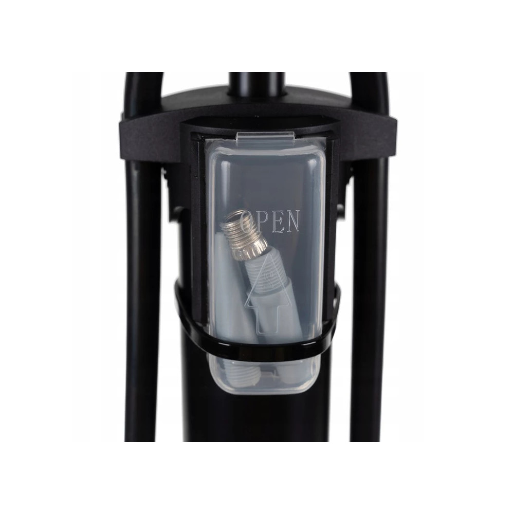 Praktická podlahová pumpa s manometrem je ideálním pomocníkem pro rychlé a pohodlné nafukování kol, míčů i nafukovacích matrací. Díky stabilní podlahové konstrukci nemusíte pumpu držet v rukou, což výrazně usnadňuje a zrychluje práci. Pumpa je vybavena dlouhou ohebnou hadicí se zajišťovacím systémem, který pevně drží ventil během pumpování. Univerzální dvojitá hlavice je kompatibilní s ventilky jízdních kol i automobilů. Součástí balení jsou také další nástavce, včetně jehly na míče a koncovky pro nafukování matrací nebo plaveckých kruhů.