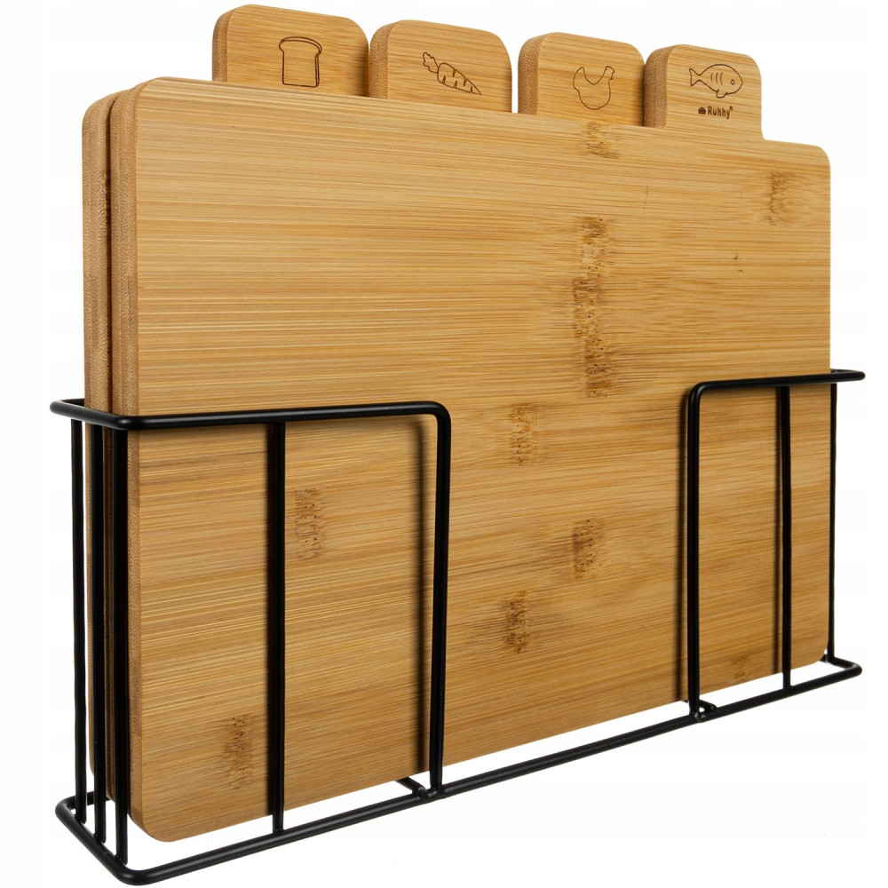 Praktická sada čtyř bambusových krájecích prkének se stojanem je ideálním pomocníkem do každé kuchyně. Součástí balení je také stylový stojan, který usnadňuje přehledné skladování a nezabírá mnoho místa na pracovní desce. Prkénka jsou vyrobena z přírodního bambusového dřeva, které je odolné vůči vlhkosti, je antibakteriální a bezpečné pro kontakt s potravinami.
