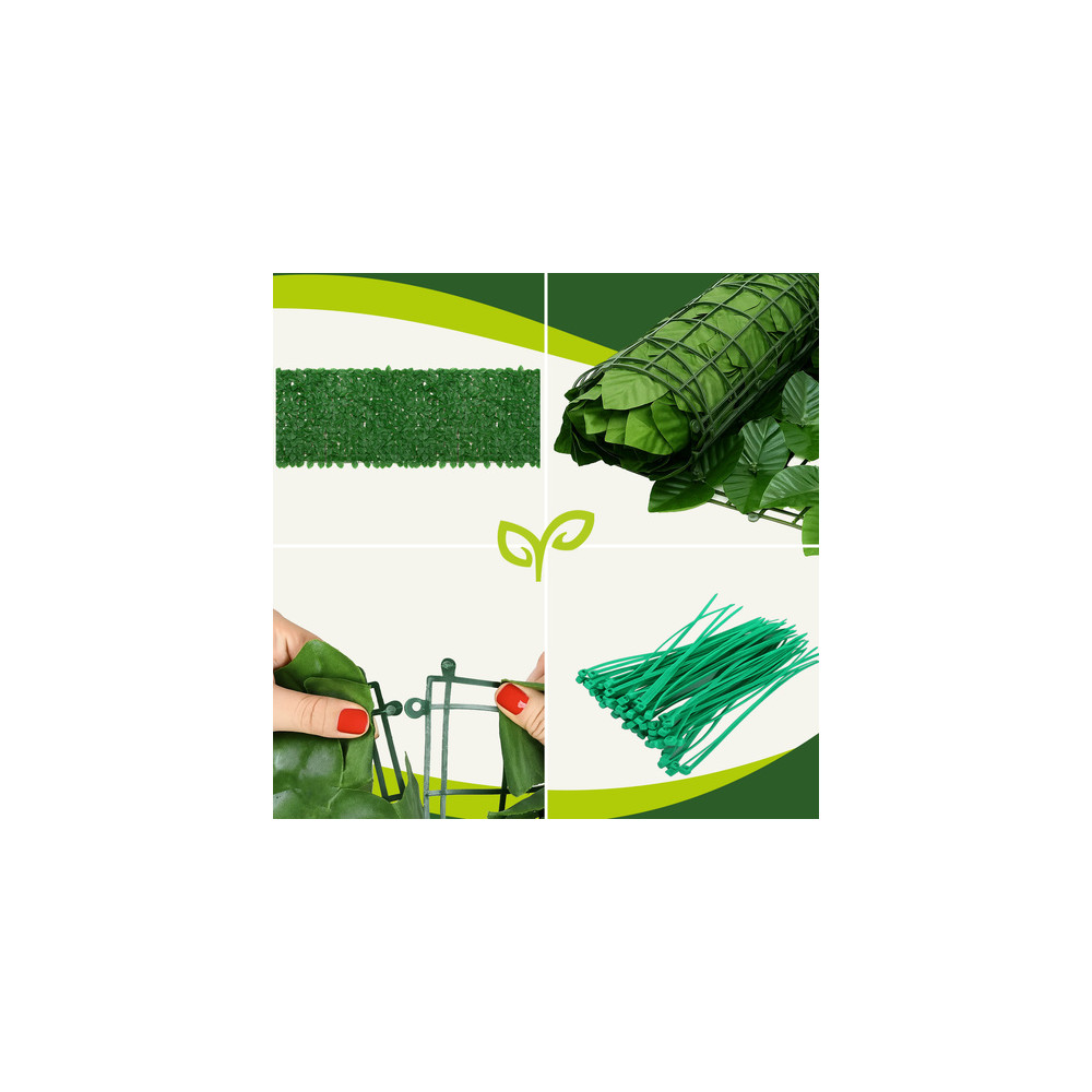 V případě potřeby postačí plot otřít vlhkým hadříkem. Montáž je rychlá a snadná, panely lze jednoduše spojit a připevnit pomocí stahovacích pásek.