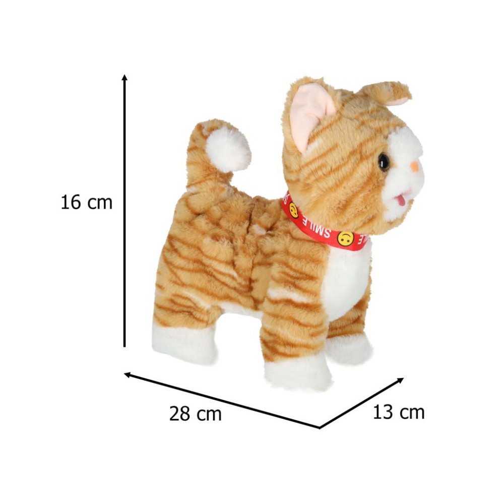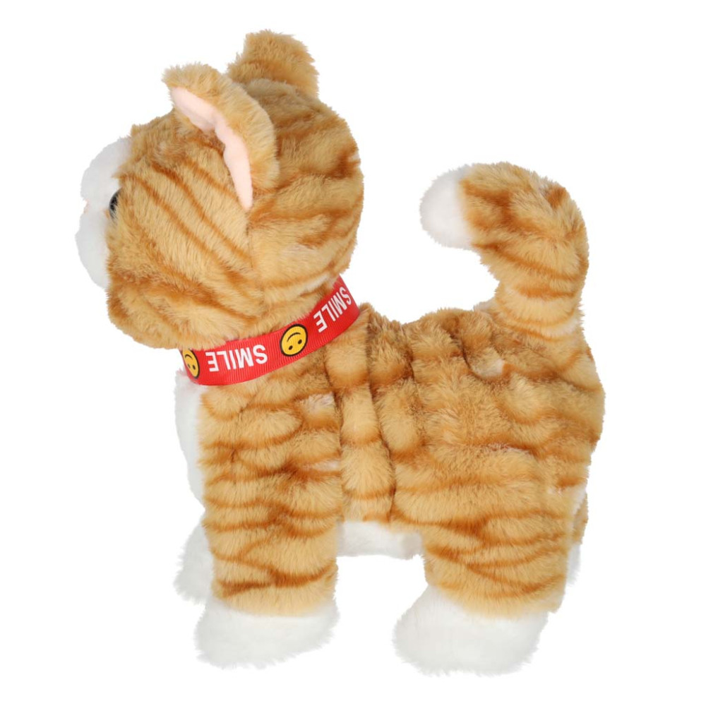 Reaguje na vaše doteky - když kočku pohladíte po hlavě, mňouká a pohybuje hlavou a jazykem. Kočka chodí a zároveň hraje písničky - když stisknete tlačítko na vodítku, kočka chodí dopředu a hraje písničky v angličtině.