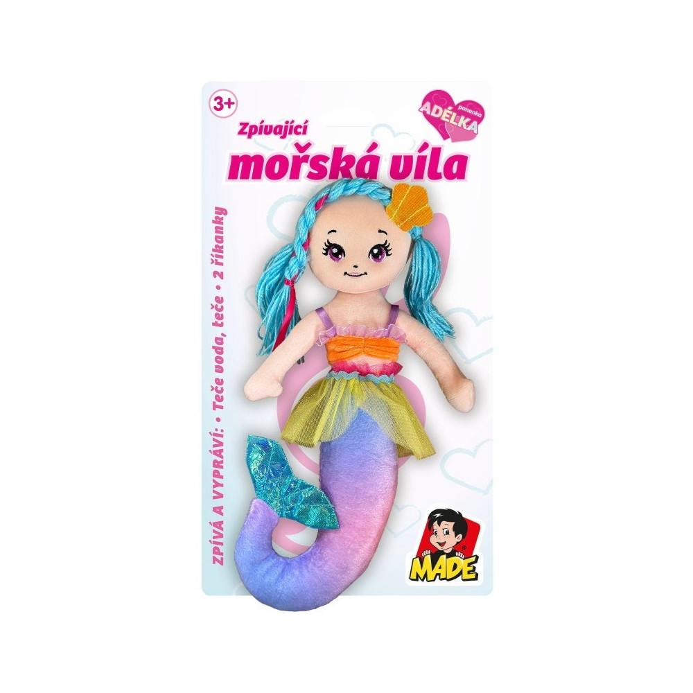 Textilní panenka, která má podobu mořské panny. Umí říkat dvě říkanky a zazpívá jednu krásnou písničku s tématikou vodního světa. Panenka je v pěkných pestrých barvách a má třpytivou ploutev, takže zaujme každou holčičku.