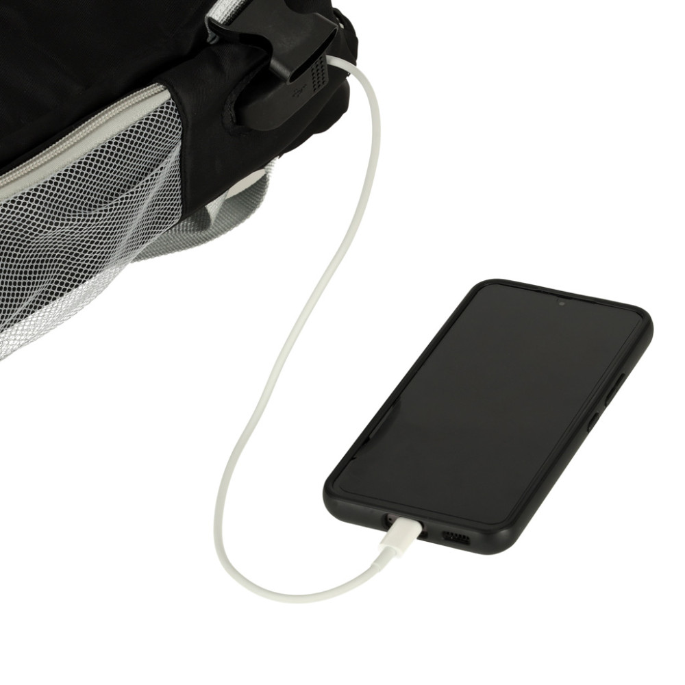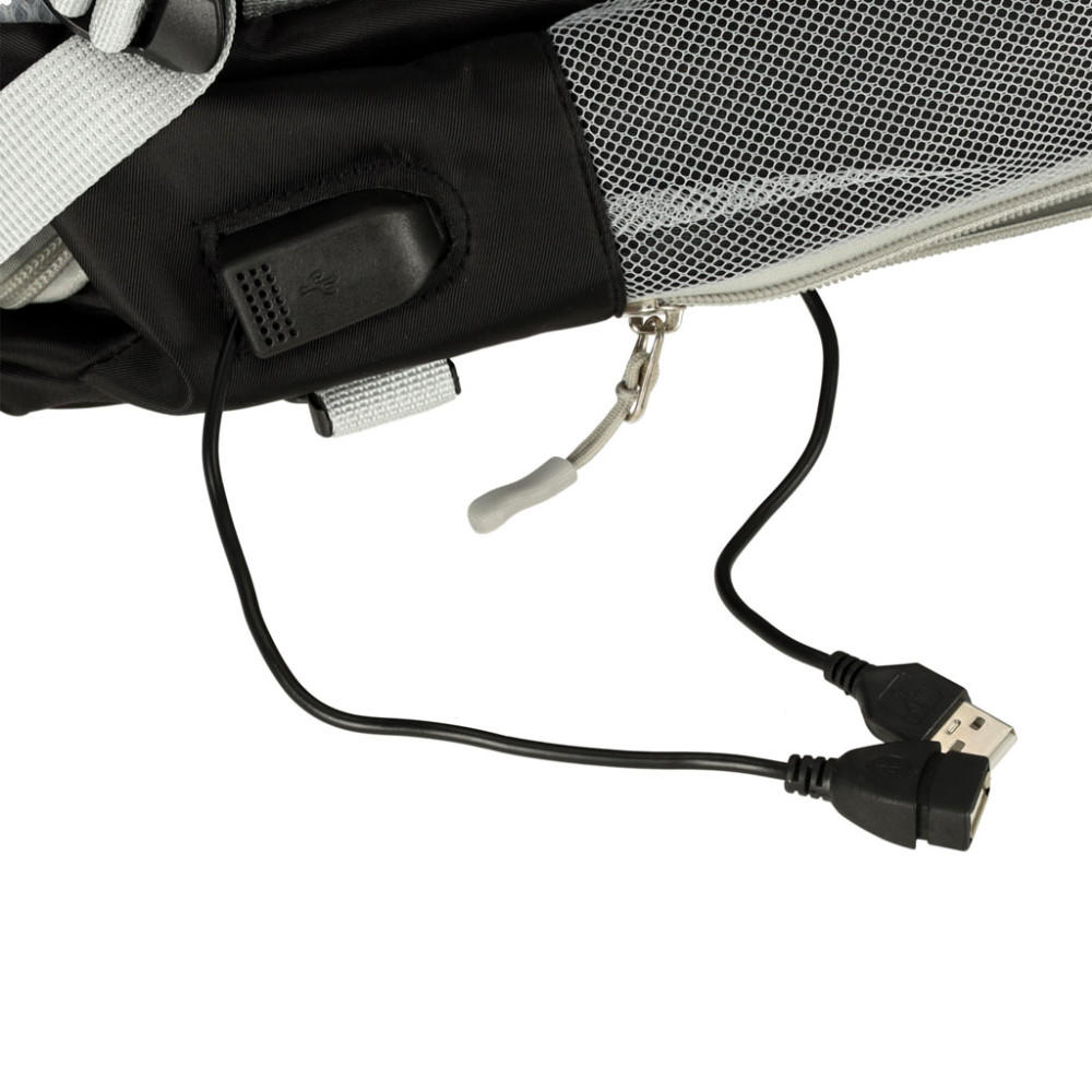 Batoh disponuje dírkou pro USB kabel. Můžete si tedy pohodlně nabíjet telefon nebo připojit jiné zařízení rovnou z batohu a nemusíte ho nosit v ruce.