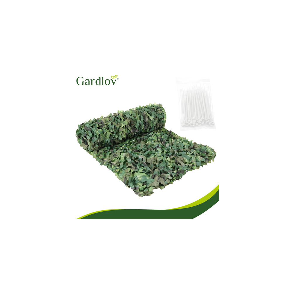 Maskovací síť poskytuje soukromí, stín a efektivní maskování v terénu. Lesní vzor je ideální pro zahradu, plot, pergolu, kempování nebo airsoft. Síť je vyrobena z odolného a voděodolného materiálu, který rychle schne a vydrží celoroční používání. Lehká konstrukce umožňuje snadnou manipulaci a přenášení. Zesílené okraje a 100 stahovacích pásků v balení zajišťují rychlou a stabilní montáž. Materiál je odolný vůči mechanickému poškození a intenzivnímu používání.