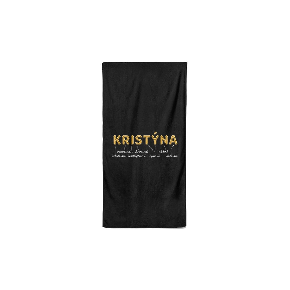 Luxusní osuška v černé barvě s vlastním jménem. Osuška má velký rozměr a materiál je velmi příjemný na dotek a díky speciální technice výroby, kdy se smísí BA a PES vlákna.
