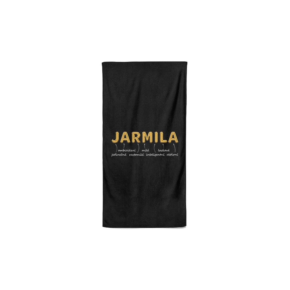 Luxusní osuška v černé barvě s vlastním jménem. Osuška má velký rozměr a materiál je velmi příjemný na dotek a díky speciální technice výroby, kdy se smísí BA a PES vlákna.