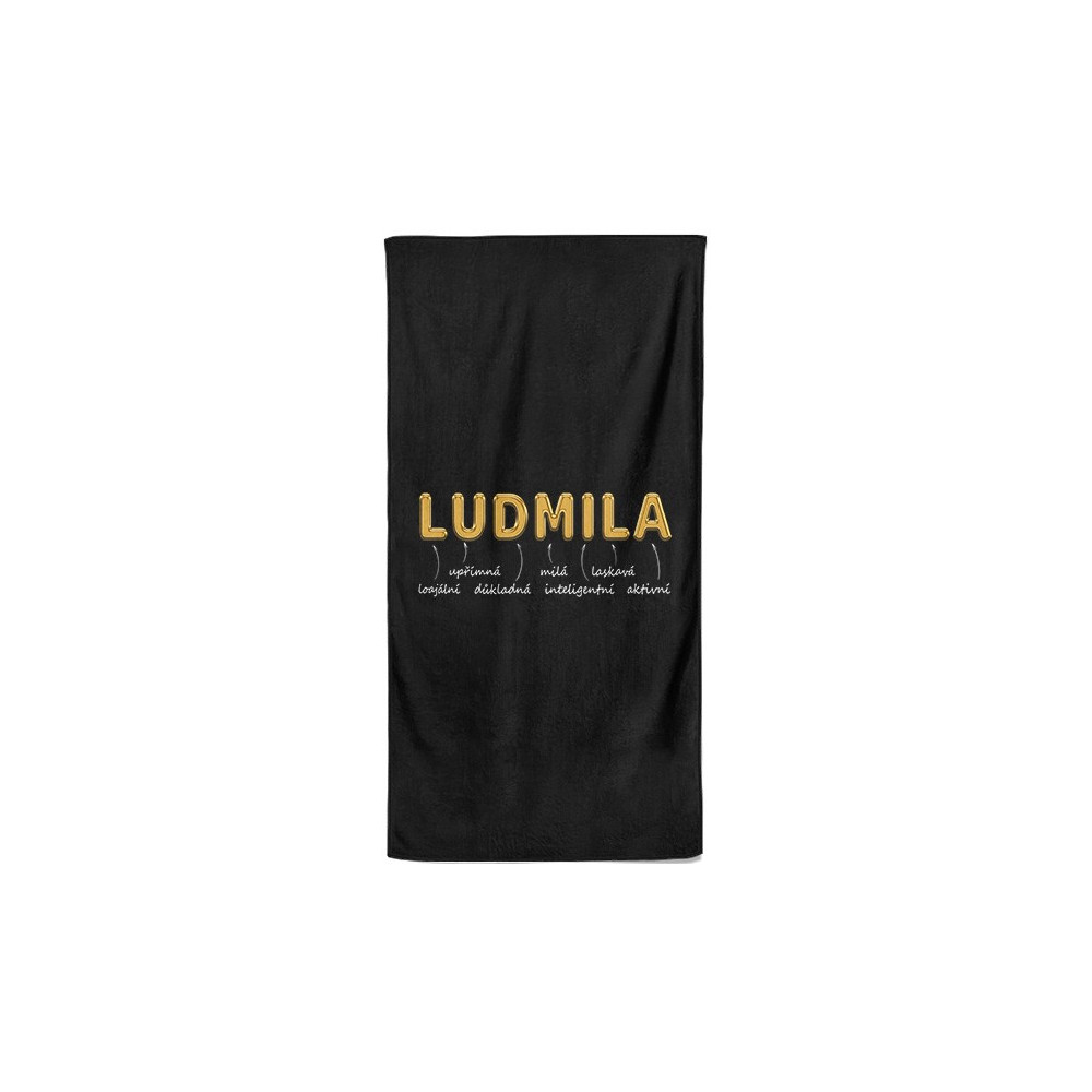 Luxusní osuška v černé barvě s vlastním jménem. Osuška má velký rozměr a materiál je velmi příjemný na dotek a díky speciální technice výroby, kdy se smísí BA a PES vlákna.