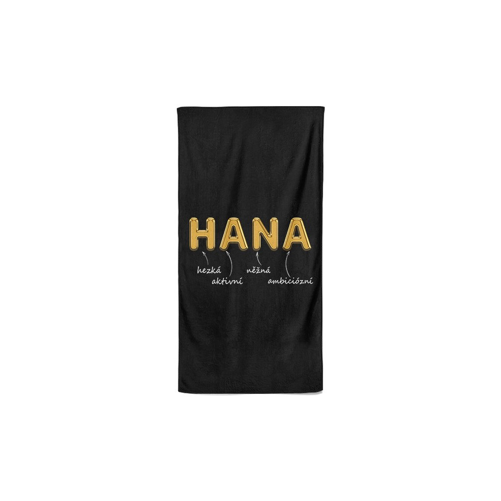 Luxusní osuška v černé barvě s vlastním jménem. Osuška má velký rozměr a materiál je velmi příjemný na dotek a díky speciální technice výroby, kdy se smísí BA a PES vlákna.