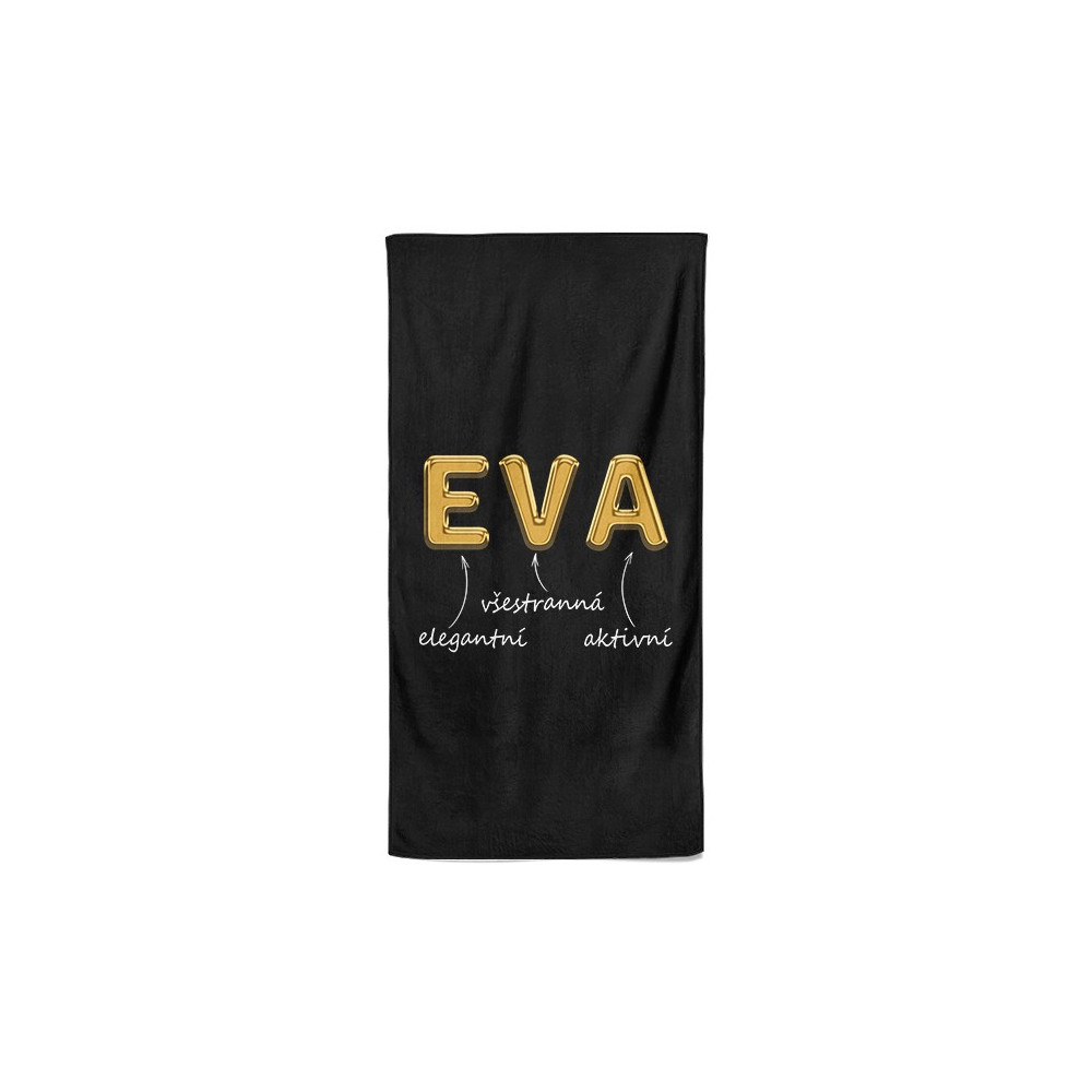 Luxusní osuška v černé barvě s vlastním jménem. Osuška má velký rozměr a materiál je velmi příjemný na dotek a díky speciální technice výroby, kdy se smísí BA a PES vlákna.