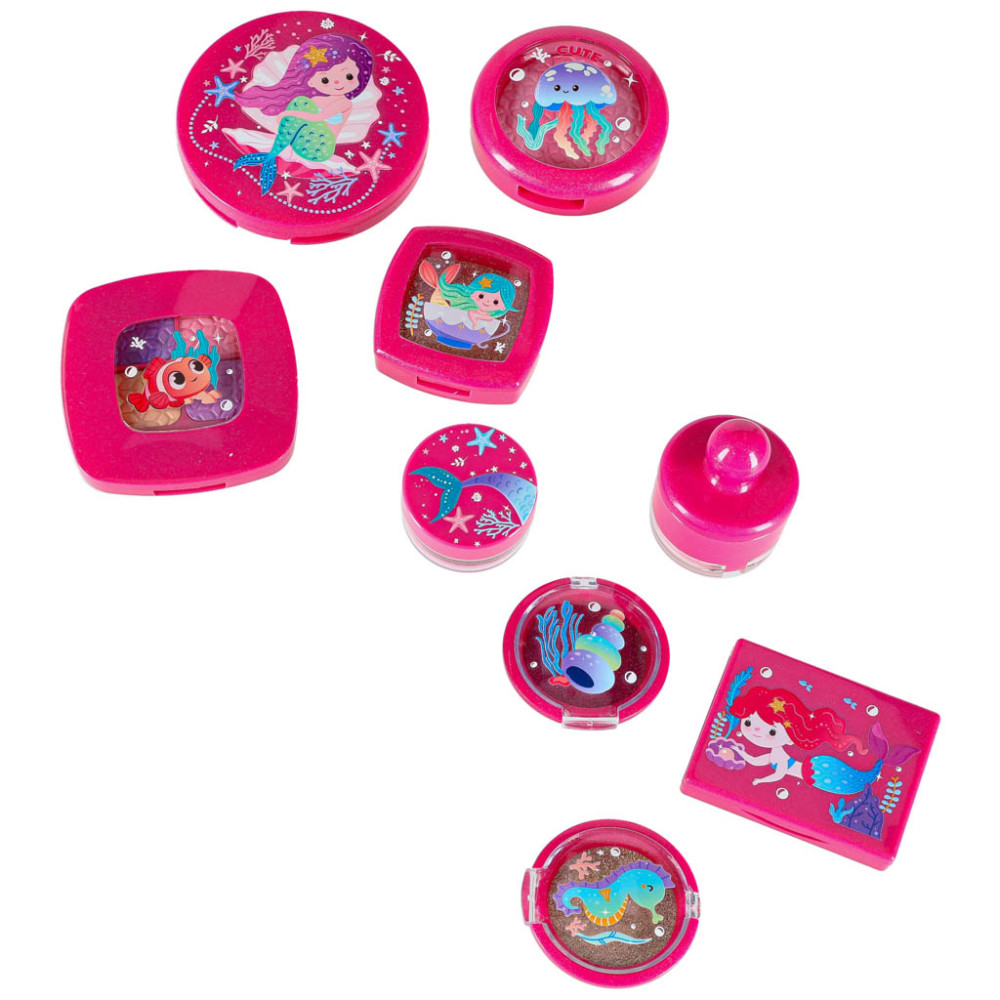 Kosmetická sada pro děti rozvíjí kreativitu a manuální zručnost - hra s imitacemi kosmetiky umožňuje dítěti procvičovat přesnost pohybu a koordinaci, stimuluje kreativní myšlení. Kufr je zdoben motivem roztomilých mořských panen a mořských zvířátek, které mu dodávají pohádkový, kouzel plný vzhled a potěší každou malou princeznu.