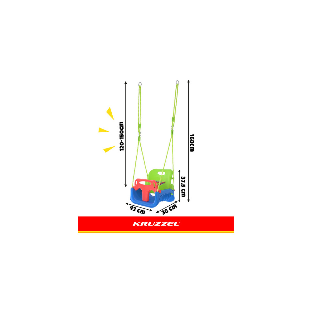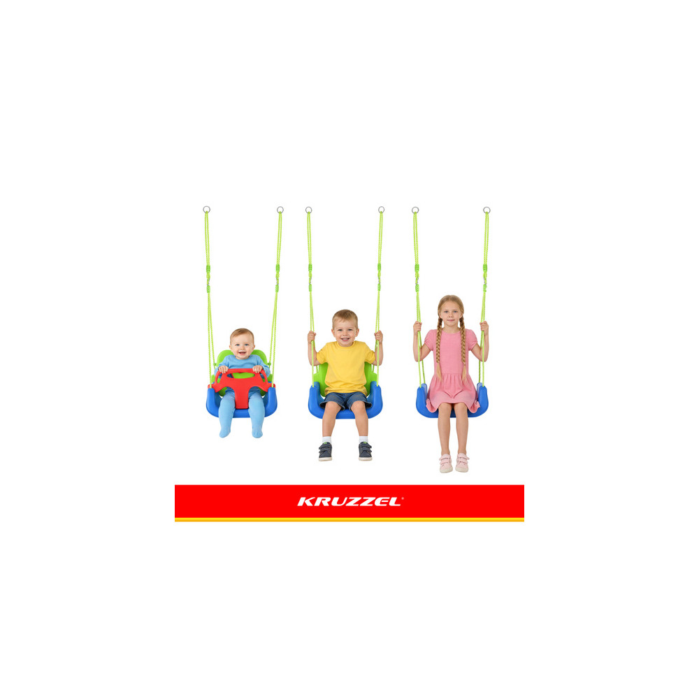 Dětská barevná houpačka, která roste s dětmi. Z této houpačky tak dokážete utvořit až 3 různé varianty houpačky. Díky této vymoženosti ušetříte, nejen peníze ale i čas kupováním nových modelů dle velikosti Vašeho dítěte.